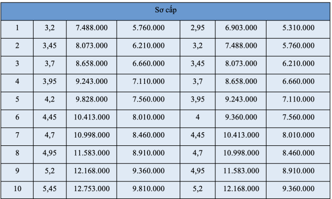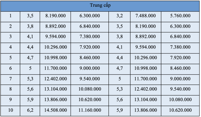Bảng lương chuyên môn kỹ thuật công an