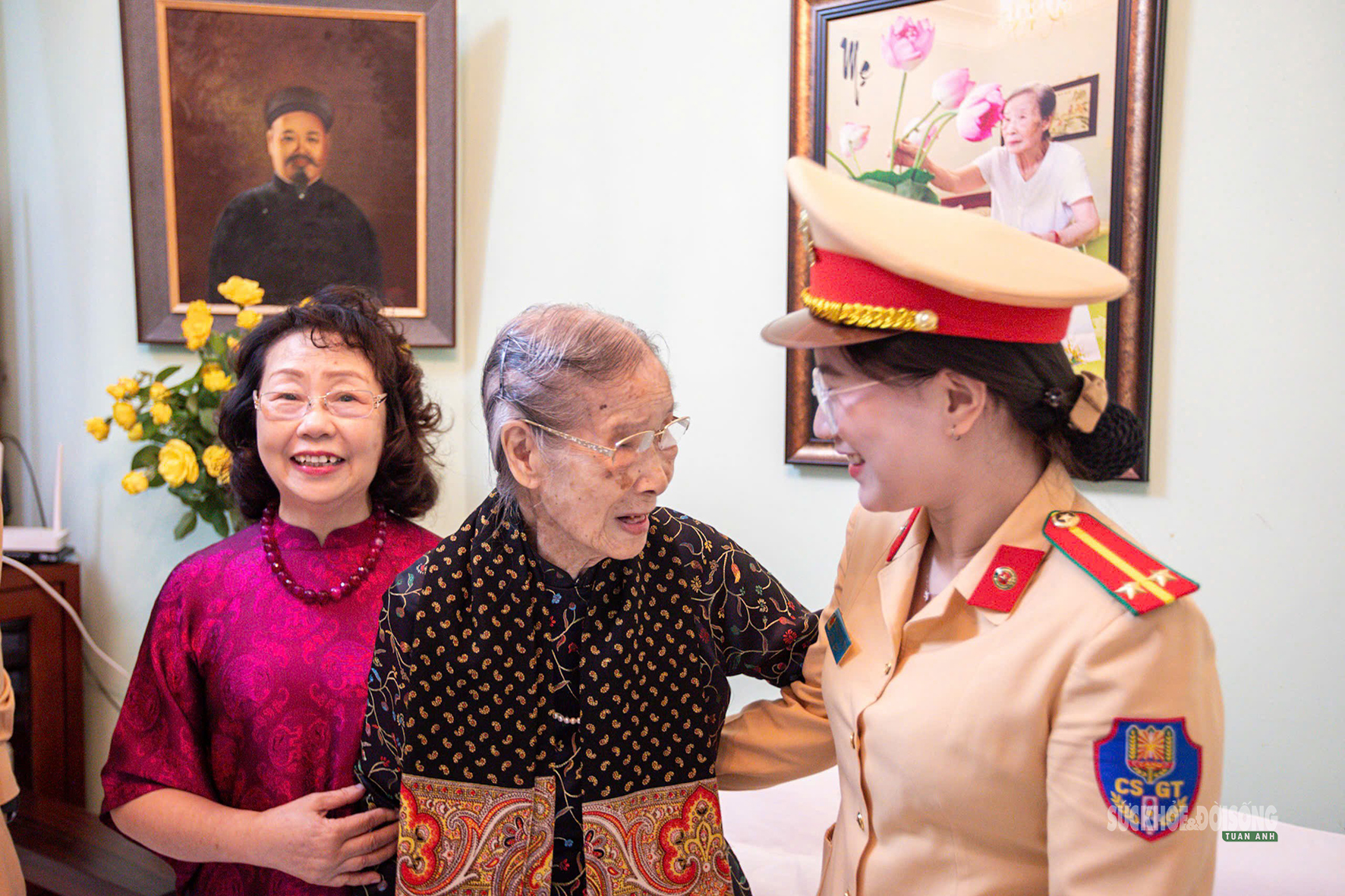 CSGT thăm hỏi, động viên cụ trước giờ bỏ phiếu. Ảnh: Ngọc Tiến