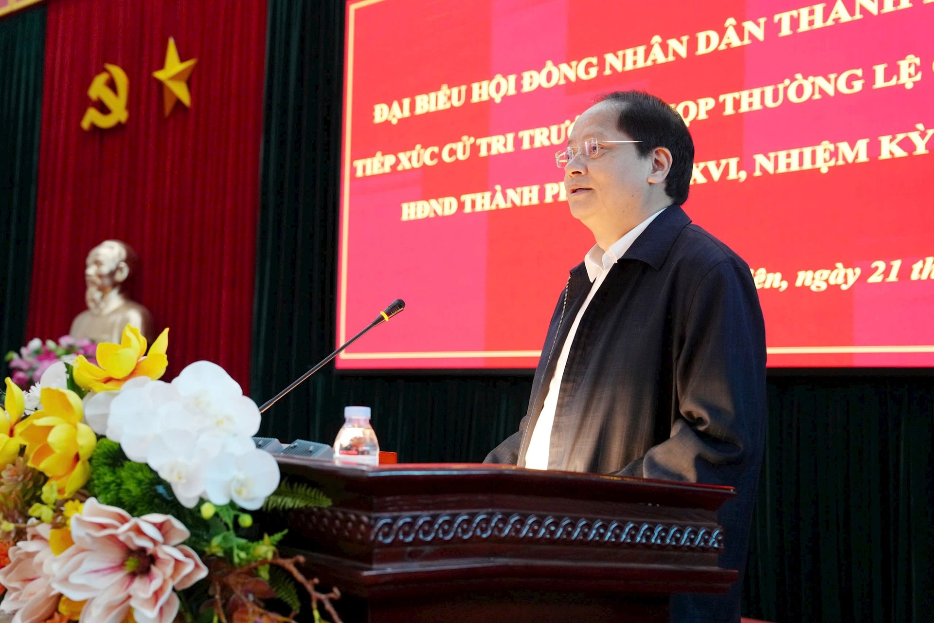 Tại buổi tiếp xúc, các đại biểu HĐND thành phố thông tin đến cử tri 3 xã về nội dung, thời gian và công tác tổ chức kỳ họp thường lệ cuối năm 2025 HĐND thành phố.