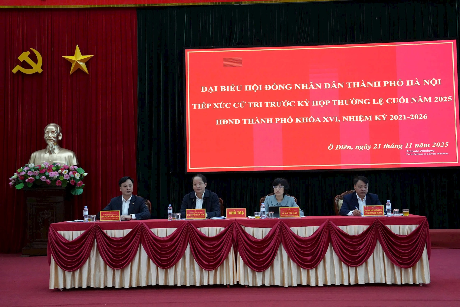 Tổ đại biểu số 25, HĐND thành phố Hà Nội tiếp xúc cử tri 3 xã: Đan Phượng, Ô Diên và Liên Minh. Ảnh: Minh Phú