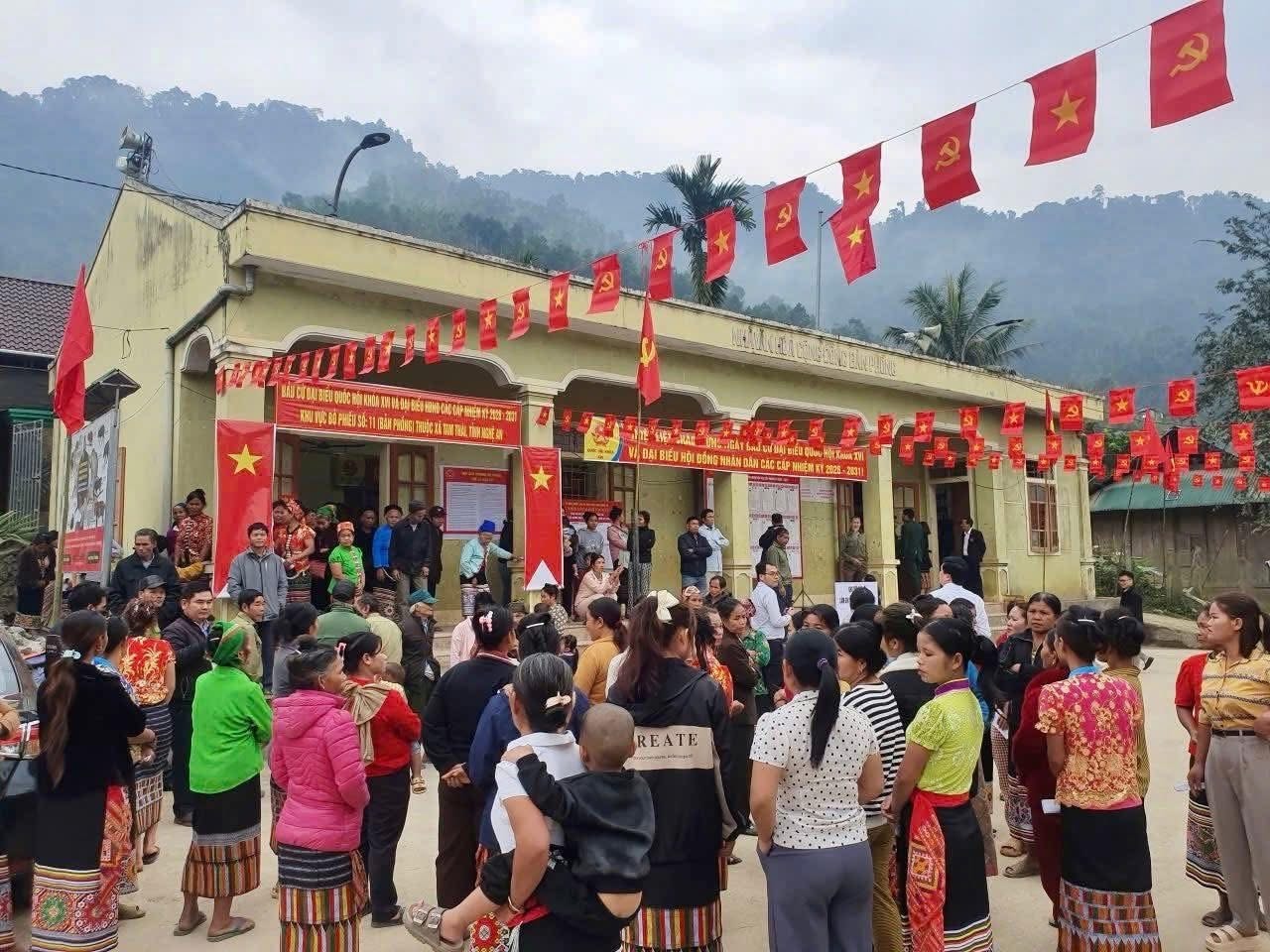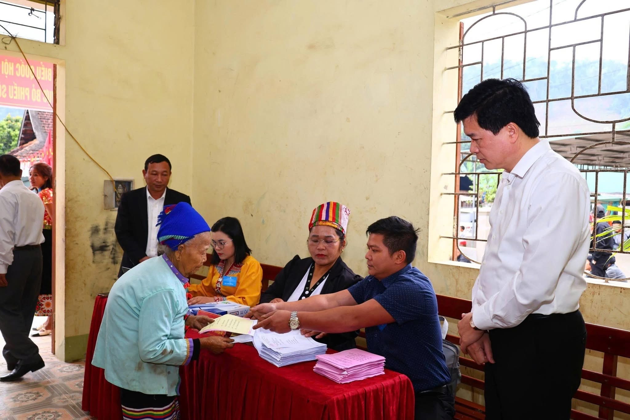 Tại các điểm bỏ phiếu, các tổ bầu cử hướng dẫn cử tri thực hiện các bước kiểm tra danh sách, nhận phiếu và bỏ phiếu theo đúng nguyên tắc phổ thông, bình đẳng, trực tiếp và bỏ phiếu kín. Nhiều cử tri là đồng bào dân tộc thiểu số trong trang phục truyền thống đã đến từ sớm, thể hiện sự quan tâm và trách nhiệm đối với sự kiện chính trị quan trọng của đất nước.