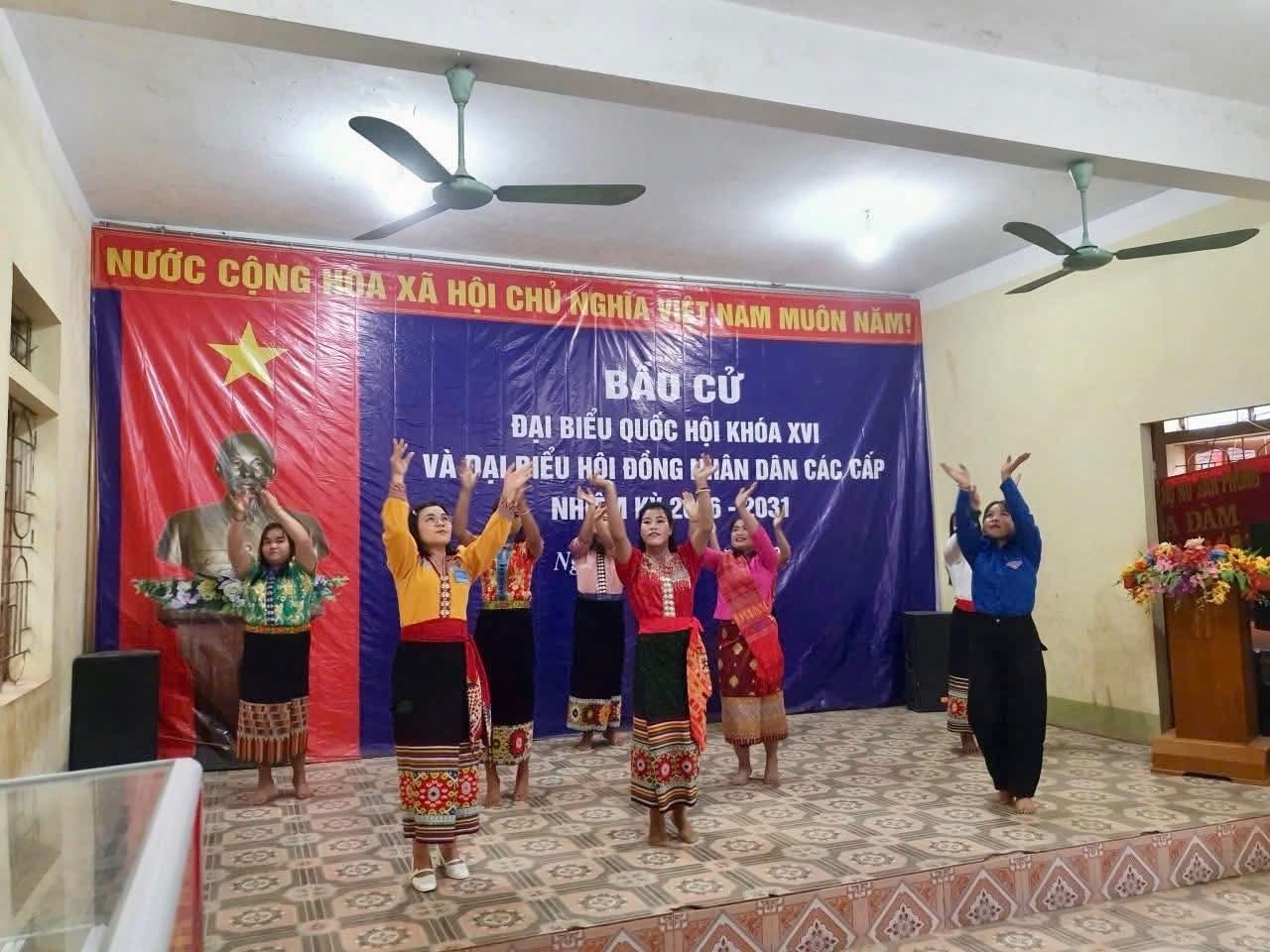 Trong lễ khai mạc, các tiết mục văn nghệ chào mừng do bà con nhân dân và các đoàn thể biểu diễn đã tạo nên không khí vui tươi, rộn ràng, góp phần để ngày bầu cử thực sự trở thành ngày hội của toàn dân.