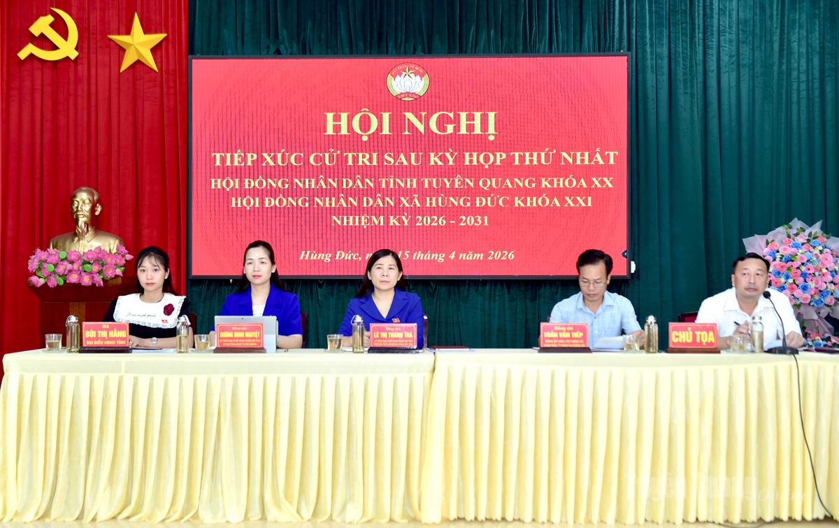 Tổ đại biểu số 6 HĐND tỉnh gồm các đại biểu: Lê Thị Thanh Trà, Ủy viên BCH Đảng bộ tỉnh, Phó Chủ tịch HĐND tỉnh; Dương Minh Nguyệt, Ủy viên BCH Đảng bộ tỉnh, Phó Chủ tịch Ủy ban MTTQ Việt Nam tỉnh, Bí thư Tỉnh đoàn, Chủ tịch Hội Liên hiệp Thanh niên Việt Nam tỉnh; Bùi Thị Hằng, giáo viên Trường Tiểu học Bắc Mục, xã Hàm Yên tiếp xúc cử tri xã Hùng Đức.