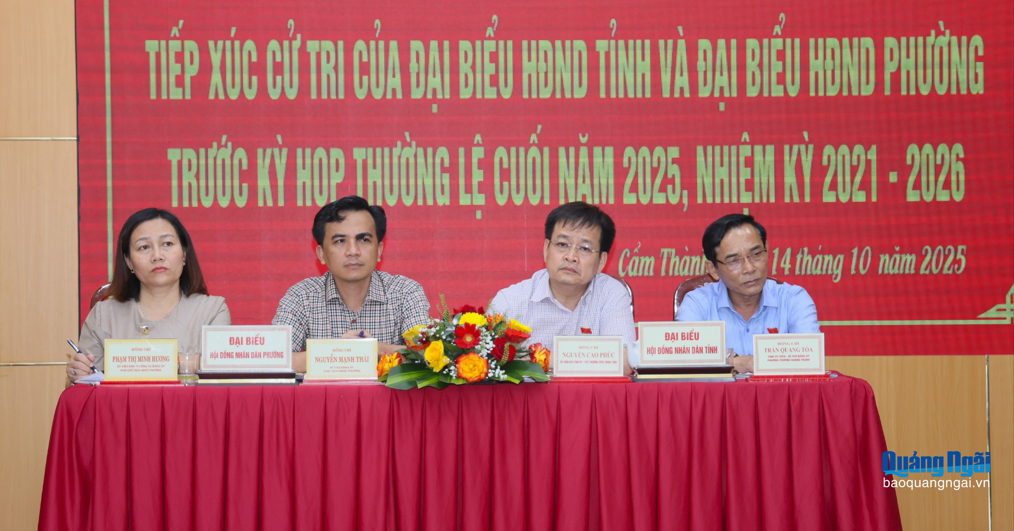 Sáng 13/10, Ủy viên Ban Thường vụ Tỉnh ủy, Phó Chủ tịch Thường trực HĐND tỉnh Nguyễn Cao Phúc cùng đại biểu HĐND tỉnh Trần Quang Tòa đã có buổi tiếp xúc cử tri phường Cẩm Thành trước Kỳ họp thường lệ cuối năm 2025 của HĐND tỉnh khóa XIII, nhiệm kỳ 2021 - 2026.