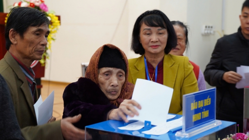 Từng đoàn cử tri, từ người cao tuổi đến thanh niên, ăn mặc chỉnh tề, mang theo thẻ cử tri đến điểm bỏ phiếu từ rất sớm. Ai cũng bày tỏ niềm vui khi được tham gia lựa chọn những đại biểu đại diện cho ý chí và nguyện vọng của nhân dân.