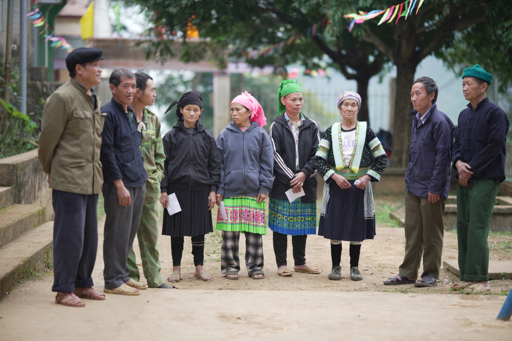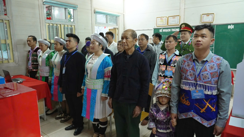 Ở nơi xóm nhỏ, ngày bầu cử cũng là một ngày hội. Những bộ trang phục truyền thống của người Mông với đủ sắc màu rực rỡ được bà con diện trong dịp đặc biệt này. Sau khi bỏ phiếu xong, nhiều người nán lại trước sân, hỏi thăm nhau những câu chuyện thân tình, đầm ấm. Không khí vừa trang nghiêm, vừa gần gũi như một cuộc gặp gỡ quen thuộc của bà con trong bản.
