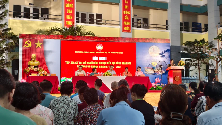 Hội nghị tiếp xúc cử tri với người ứng cử HĐND phường Phú Nhuận nhiệm kỳ 2026-2031. Ảnh: THY NHUNG