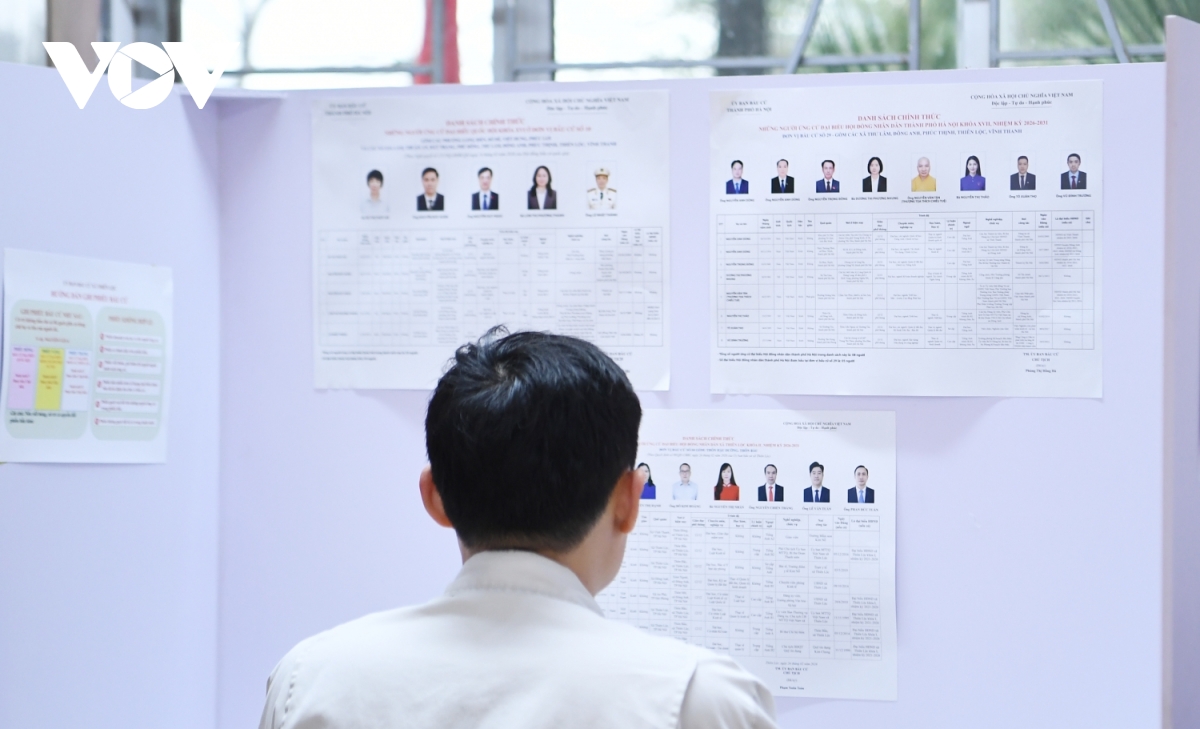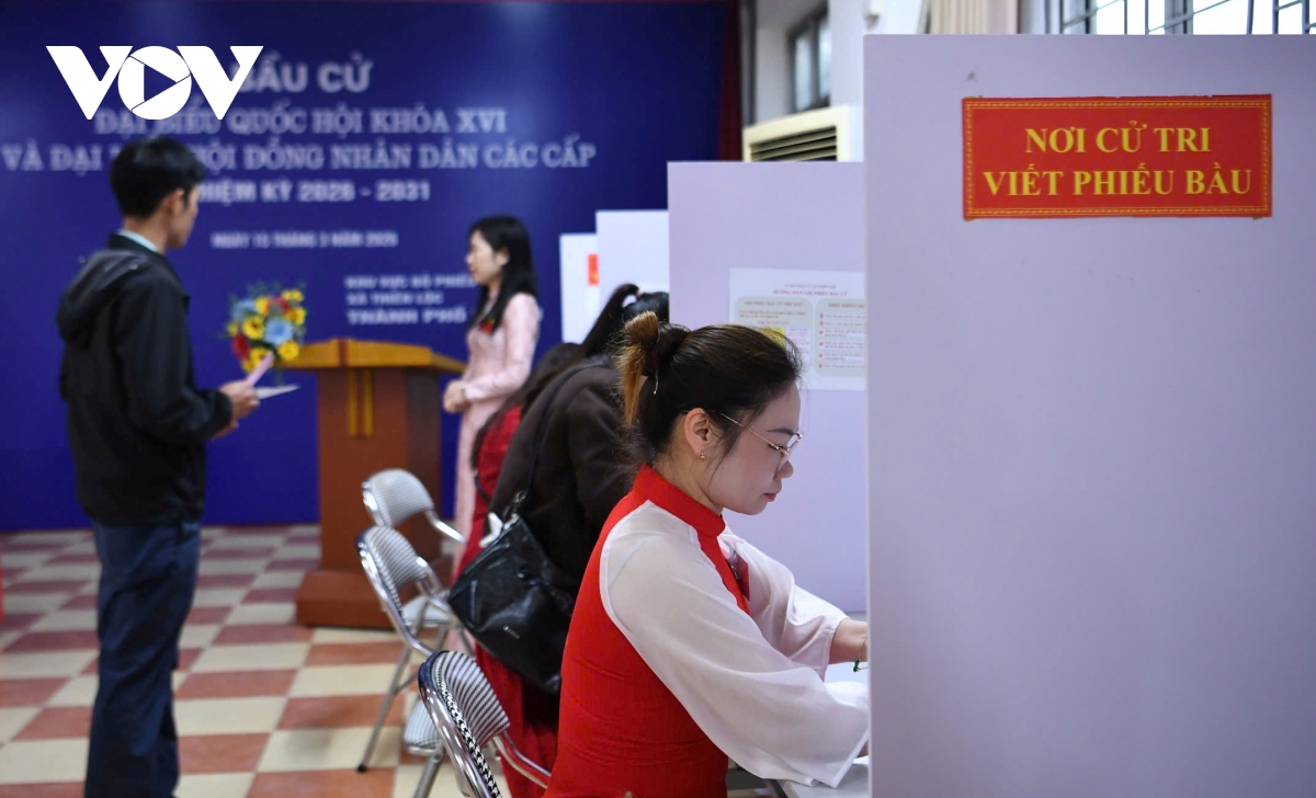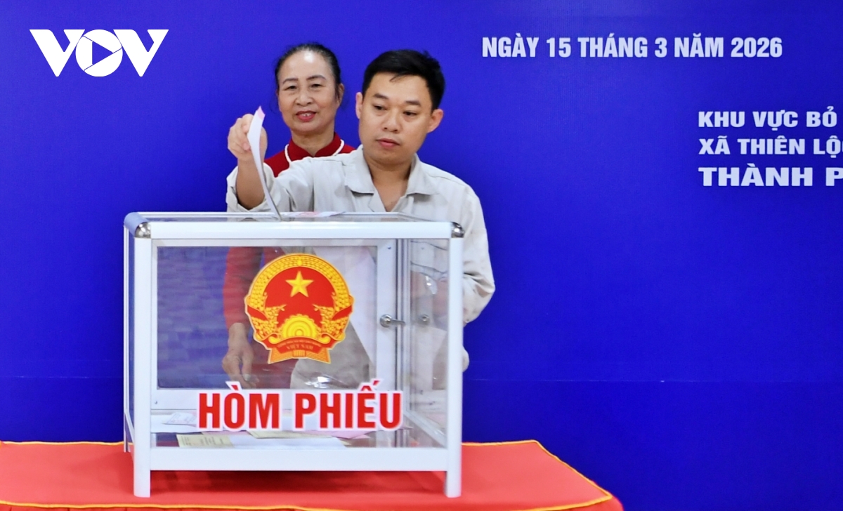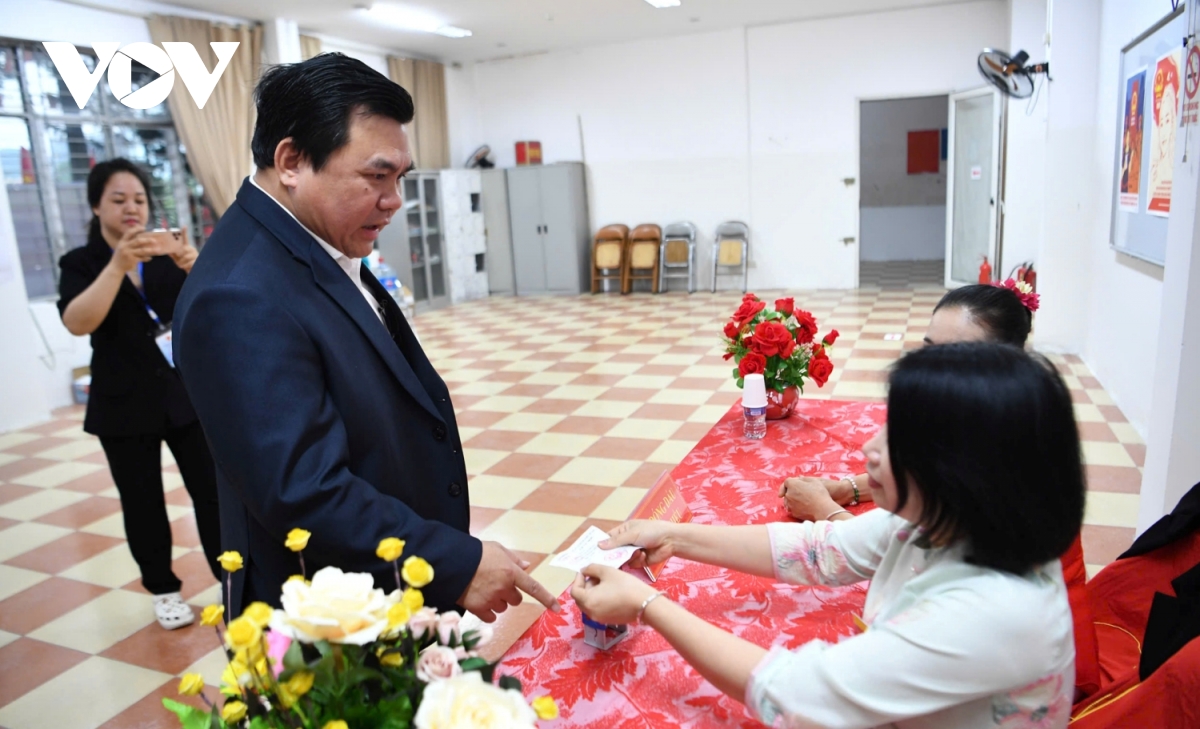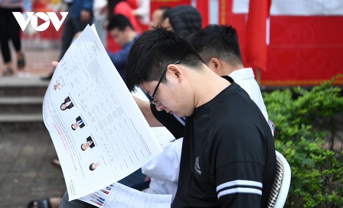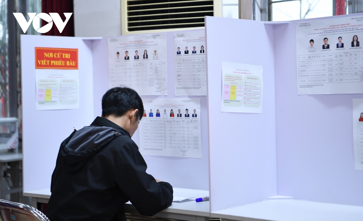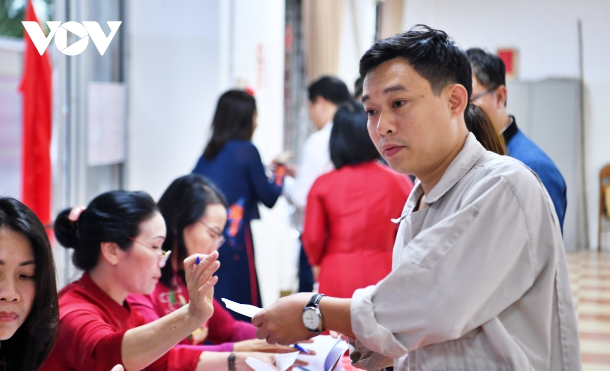 Trong ảnh là ông Nguyễn Hồng Phóng, nhân viên Xí nghiệp Quản lý và Phát triển nhà ở xã hội, nhận phiếu bầu đã được đóng dấu. Chia sẻ với phóng viên VOV.VN, ông Phạm Hoàng Hải, Tổ trưởng Tổ bầu cử số 15 cho biết, tính đến 12 giờ ngày 15/3, tỷ lệ cử tri đến bỏ phiếu đạt 95%.