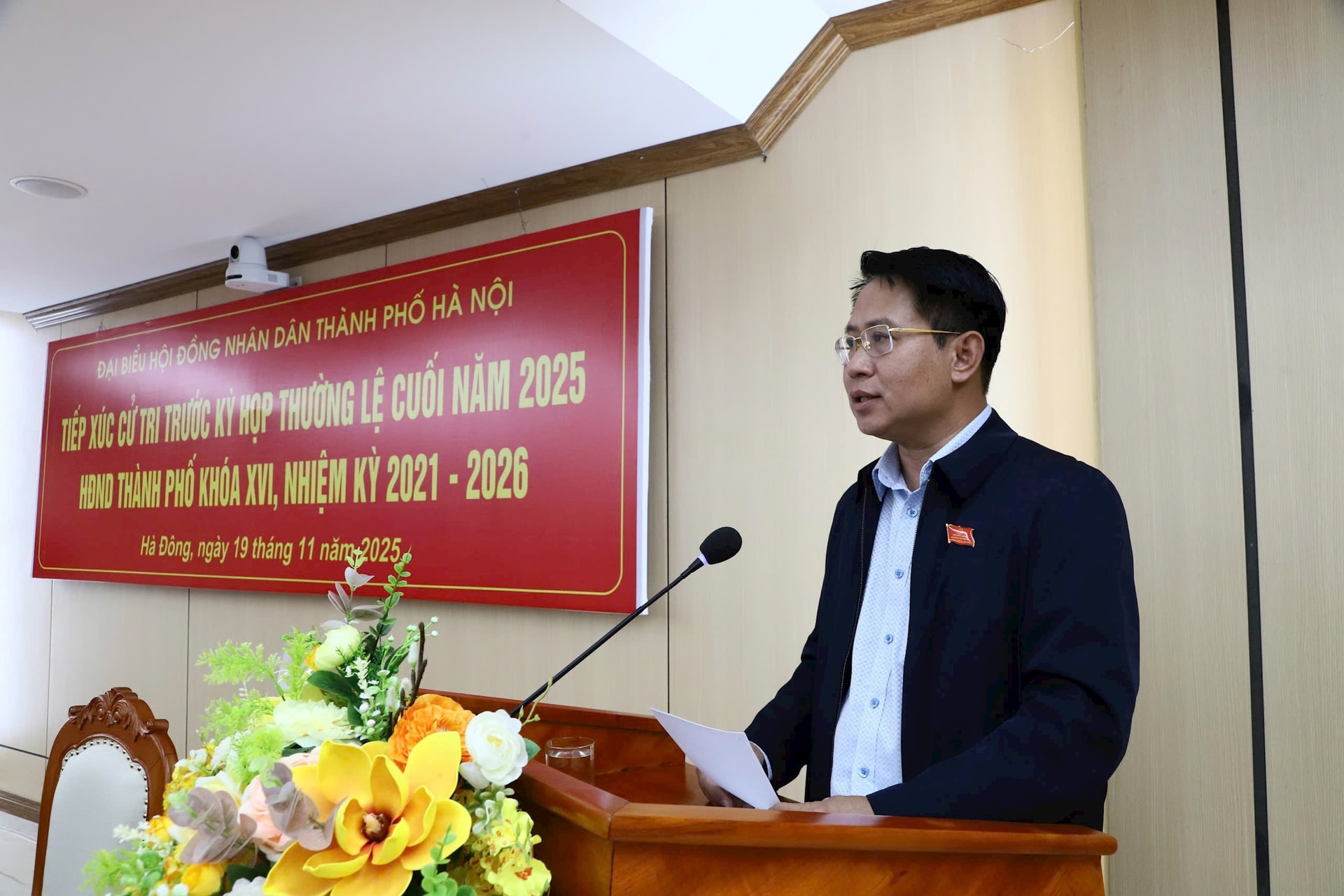 Tại hội nghị, đại diện Tổ đại biểu HĐND thành phố thông báo về nội dung, chương trình, thời gian tổ chức kỳ họp thường lệ cuối năm 2025 HĐND thành phố; Báo cáo tóm tắt của UBND thành phố về tình hình thực hiện kế hoạch phát triển kinh tế - xã hội năm 2025 và phương hướng nhiệm vụ năm 2026; Báo cáo của UBND thành phố về trả lời ý kiến, kiến nghị của cử tri tại buổi tiếp xúc cử tri lần trước.