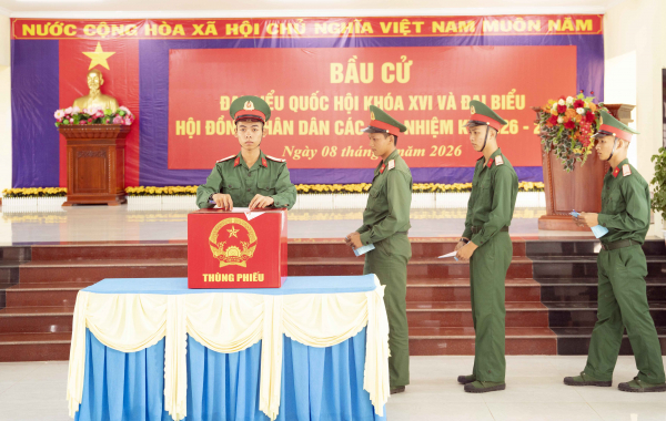 Cử tri là cán bộ Công an đặc khu Thổ Châu bỏ phiếu bầu.