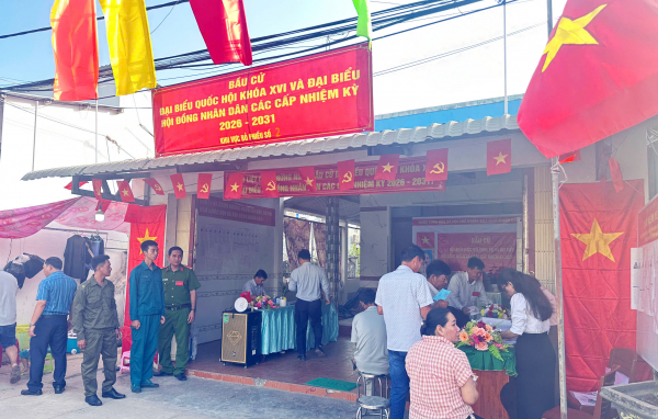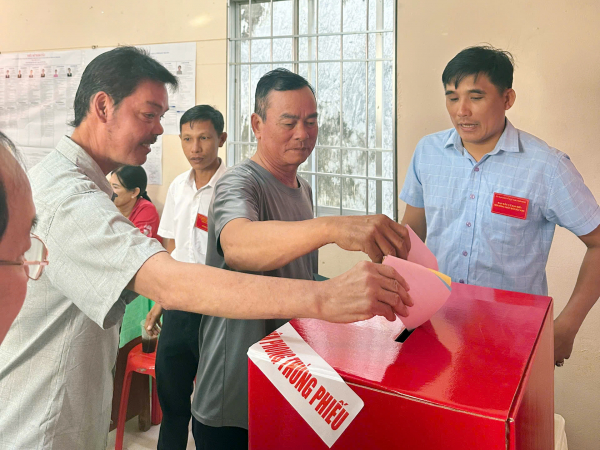 Cử tri trên địa bàn đặc khu Thổ Châu phấn khởi bỏ phiếu bầu.