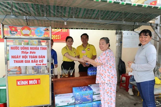 Người dân Cần Thơ phát nước uống tiếp sức cử tri trong ngày hội toàn dân đi bầu.