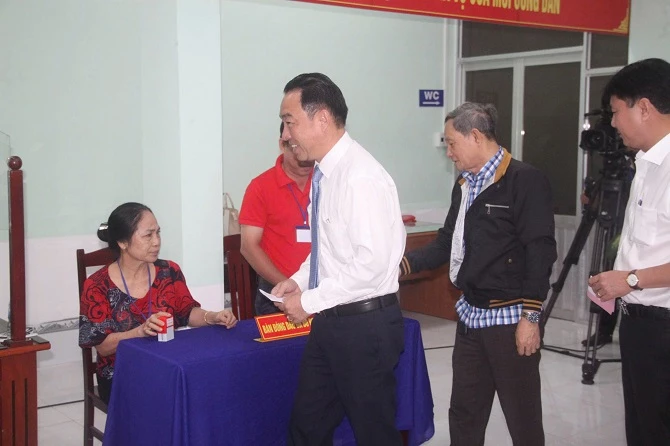 Bí thư Tỉnh ủy An Giang Nguyễn Tiến Hải trực tiếp bỏ phiếu thể hiện quyền và nghĩa vụ của công dân.