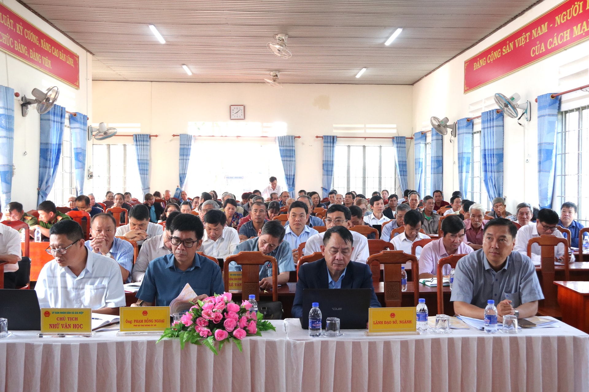 Các đồng chí lãnh đạo sở, ngành của tỉnh và lãnh đạo xã Gia Hiệp dự buổi tiếp xúc cử tri