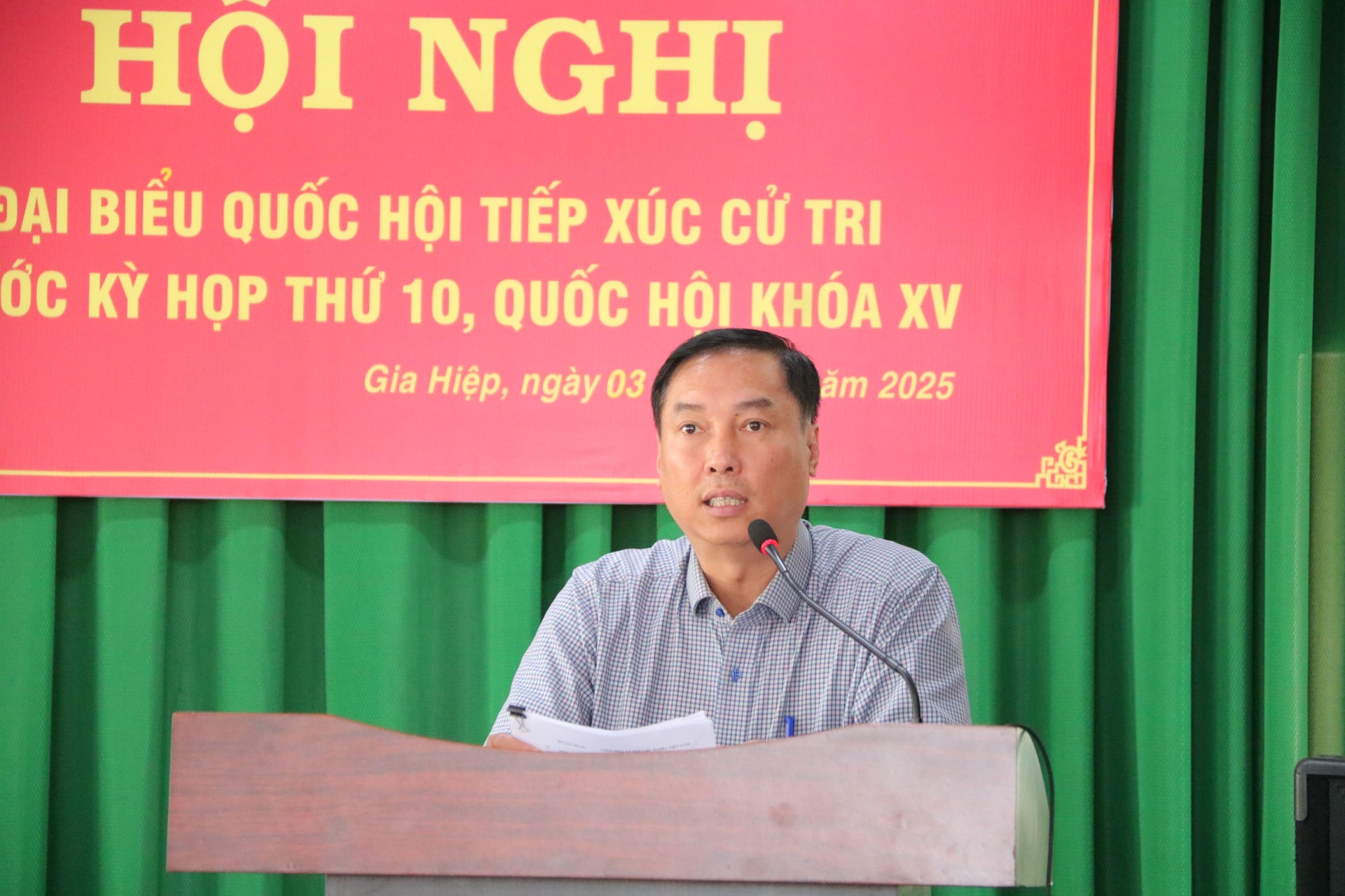 Tại buổi tiếp xúc cử tri, Đoàn ĐBQH tỉnh báo cáo với cử tri xã Gia Hiệp về những nội dung chủ yếu của Kỳ họp thứ 10, Quốc hội khóa XV; khái quát tình hình kinh tế - xã hội 9 tháng của năm 2025 cả nước và của tỉnh Lâm Đồng, cũng như công tác phòng, chống tham nhũng 9 tháng của tỉnh.