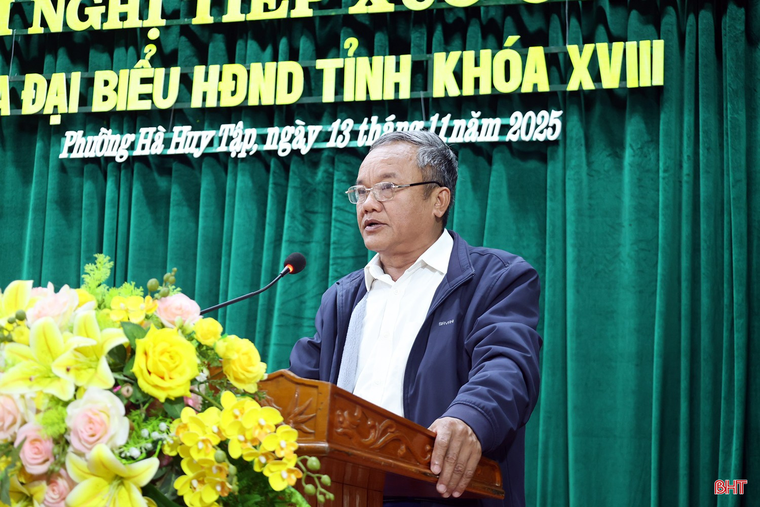 Tại buổi tiếp xúc cử tri, đại diện Tổ đại biểu HĐND tỉnh bầu tại địa phận TP Hà Tĩnh (cũ) báo cáo tình hình KT-XH, QP-AN năm 2025; kế hoạch phát triển KT-XH, QP-AN năm 2026; dự kiến những nội dung chủ yếu của kỳ họp thường lệ cuối năm của HĐND khóa XVIII.