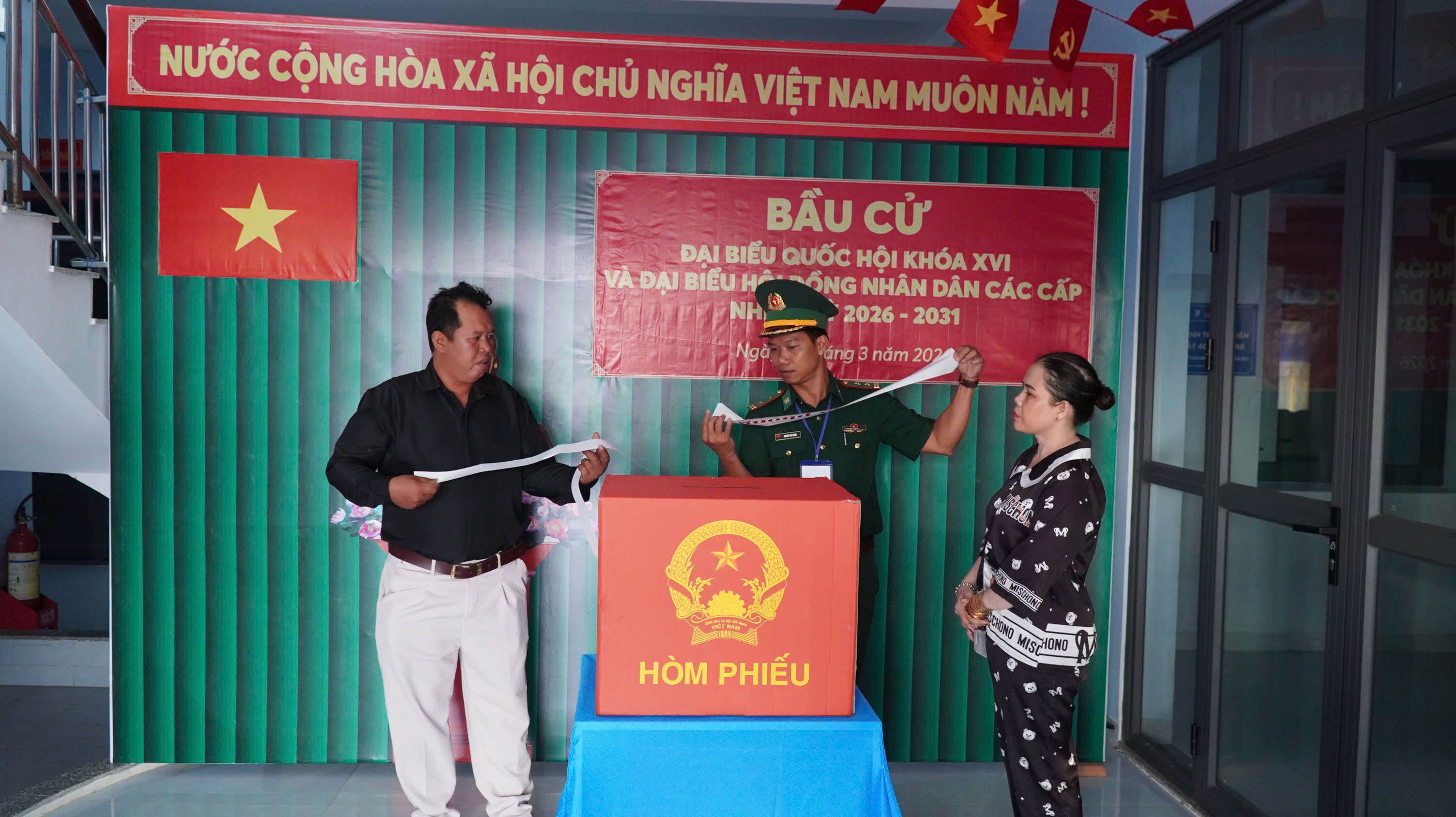 Cùng thời điểm, tại cụm đảo Hòn Khoai, xã Đất Mũi, tỉnh Cà Mau, 292 cử tri gồm lực lượng bộ đội biên phòng, trạm ra đa, hải đăng, kiểm lâm và công nhân đang thi công các công trình trọng điểm quốc gia cũng bước vào khu vực bỏ phiếu số 4.