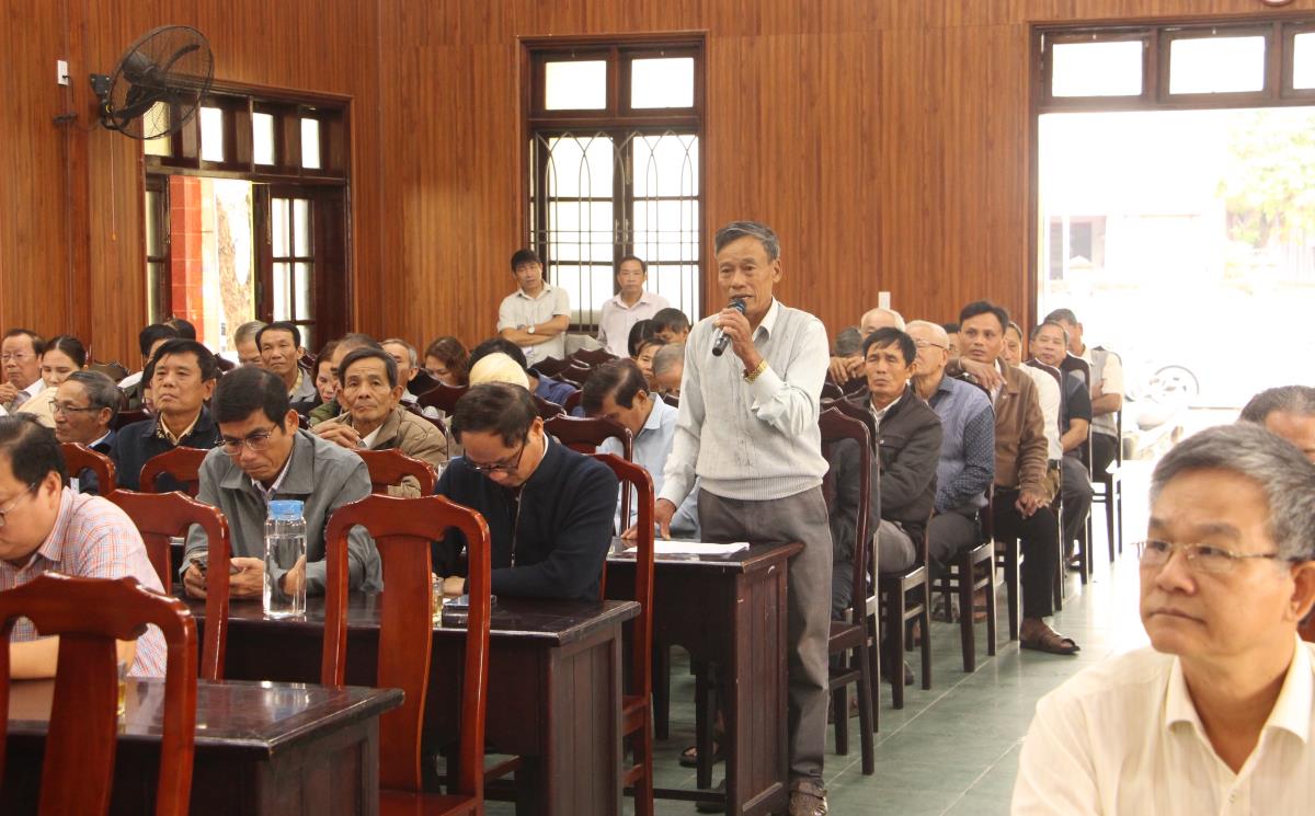 Cử tri xã Thăng Điền góp ý, kiến nghị tại buổi tiếp xúc.