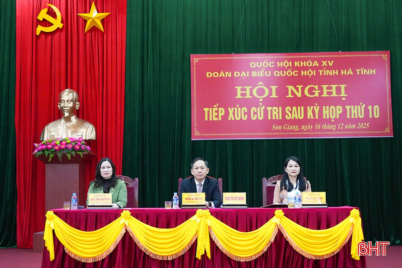 Chiều 16/12, tại hội trường UBND xã Sơn Giang, Đoàn ĐBQH tỉnh Hà Tĩnh tổ chức hội nghị tiếp xúc sau Kỳ họp thứ 10, Quốc hội khóa XV với cử tri các địa phương: Sơn Giang, Hương Sơn, Sơn Tiến, Sơn Tây, Sơn Hồng, Tứ Mỹ, Kim Hoa, Sơn Kim 1 và Sơn Kim 2.