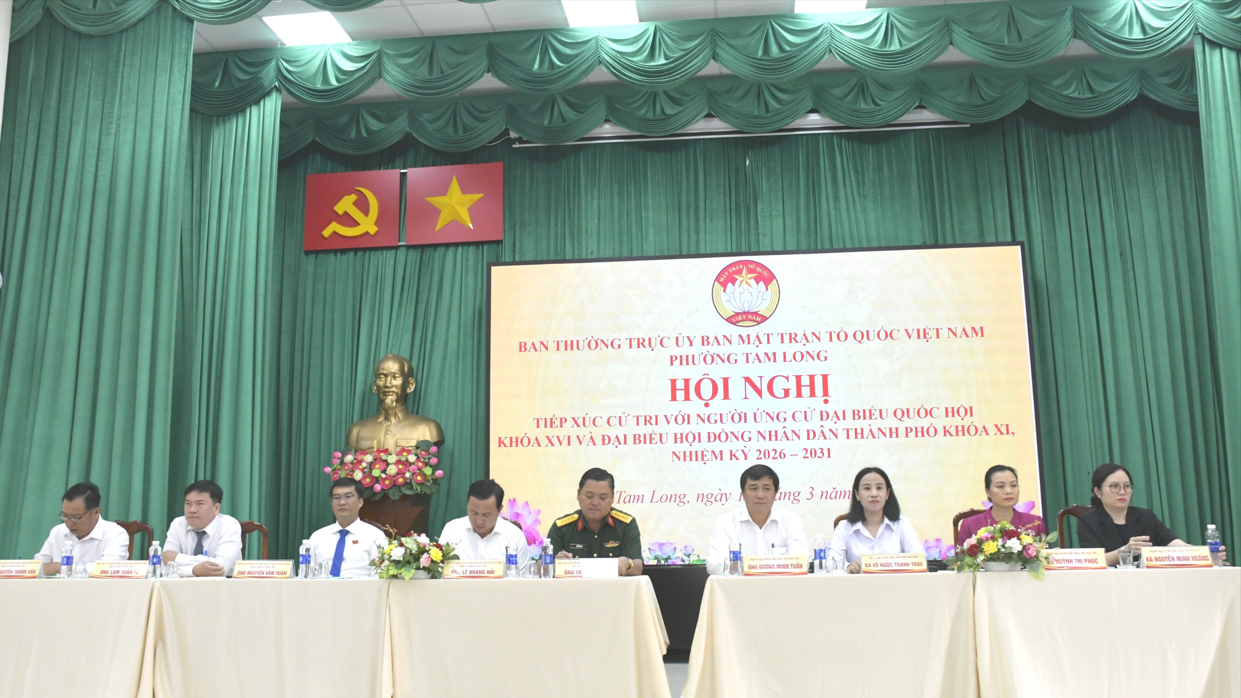 Hơn 180 cử tri phường Tam Long, thuộc đơn vị bầu cử số 5 ĐBQH và đơn vị bầu cử số 13 ĐB HĐND TPHCM, đã tham dự hội nghị.