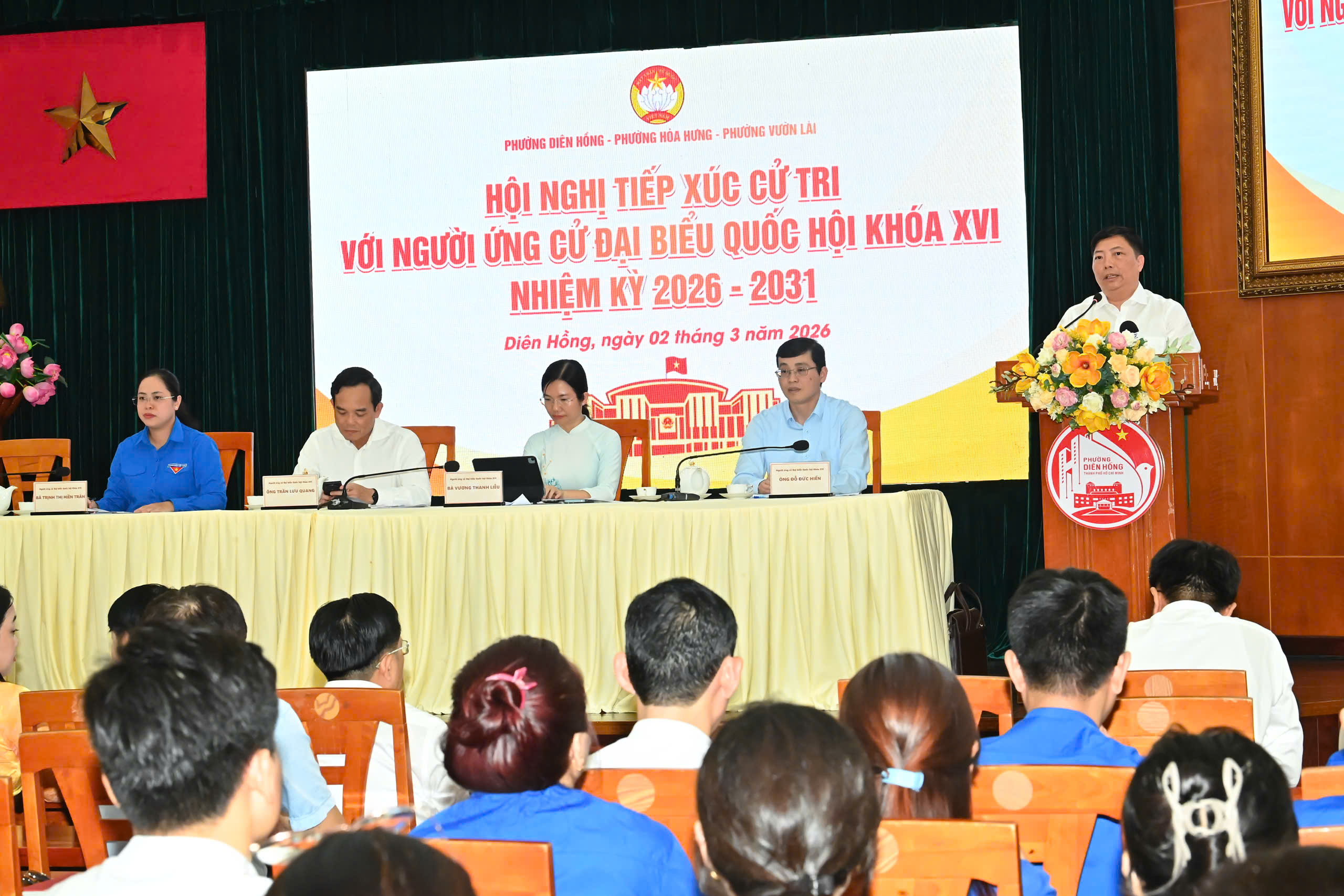 Chiều 2-3, Ban Thường trực Ủy ban MTTQ Việt Nam các phường Diên Hồng, Hòa Hưng và Vườn Lài (TPHCM) tổ chức hội nghị tiếp xúc cử tri với ứng cử viên ĐBQH khóa XVI, nhiệm kỳ 2026-2031, tại đơn vị bầu cử số 6.