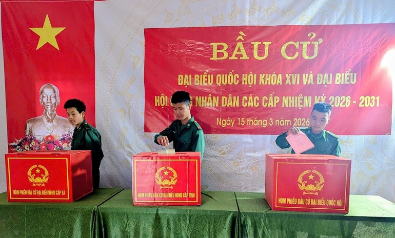 Chiến sĩ Đồn biên phòng Nậm Nhừ tham gia bỏ phiếu.