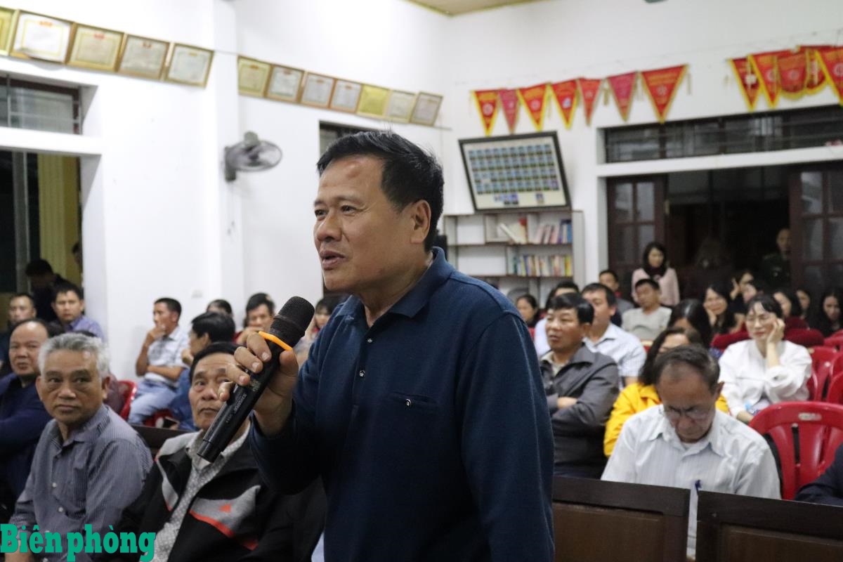 Cử tri phát biểu nhận xét về Thiếu tướng Võ Tiến Nghị trong quá trình cư trú tại địa phương. Ảnh: Viết Lam