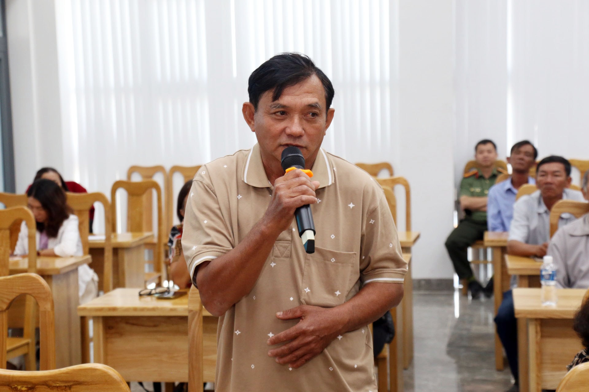 Ứng cử viên Huỳnh Ngọc Liêm trình bày chương trình hành động tại buổi tiếp xúc cử tri