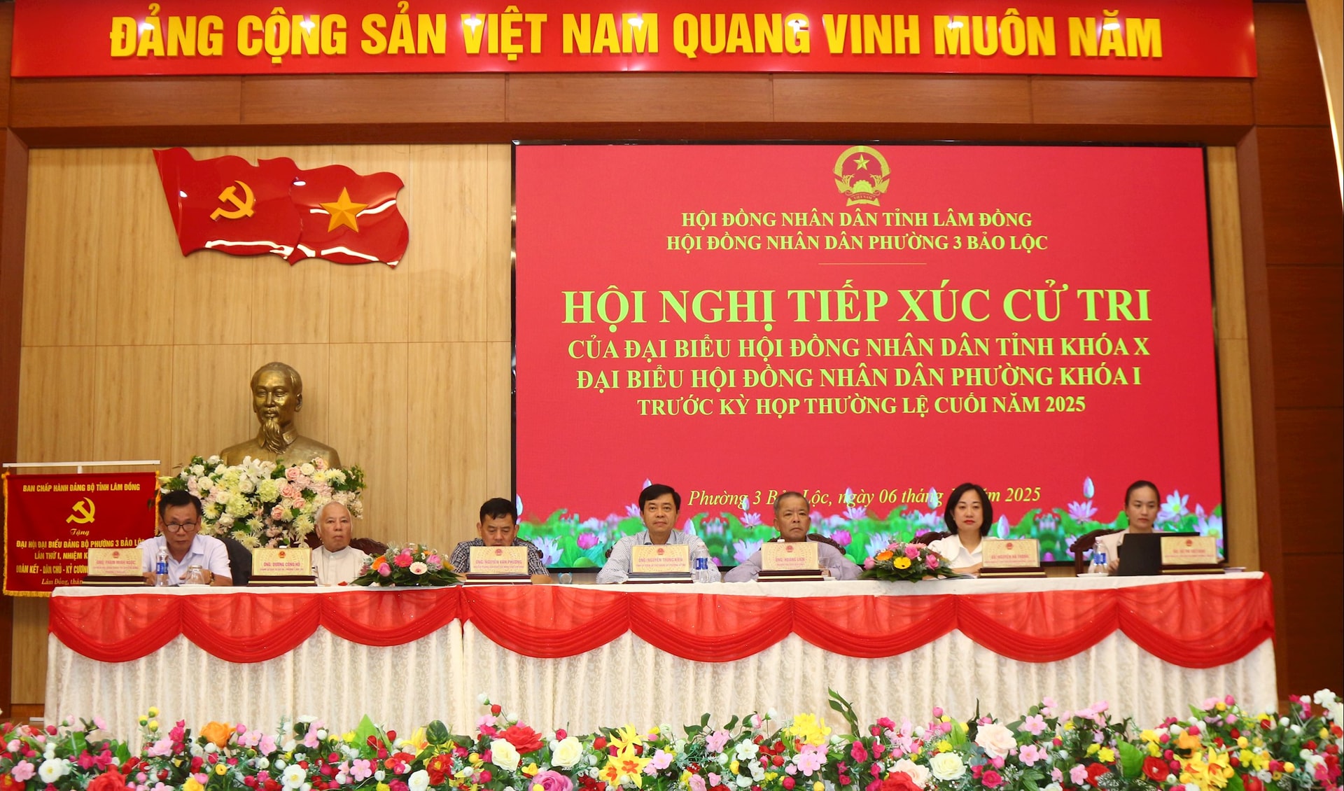 Các đồng chí chủ trì buổi tiếp xúc cử tri tại Phường 3 Bảo Lộc