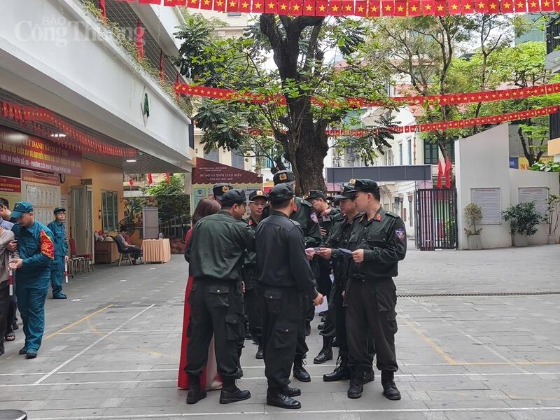Lực lượng chức năng đến xếp hàng, tham gia bầu cử từ sáng sớm. Ảnh: NH