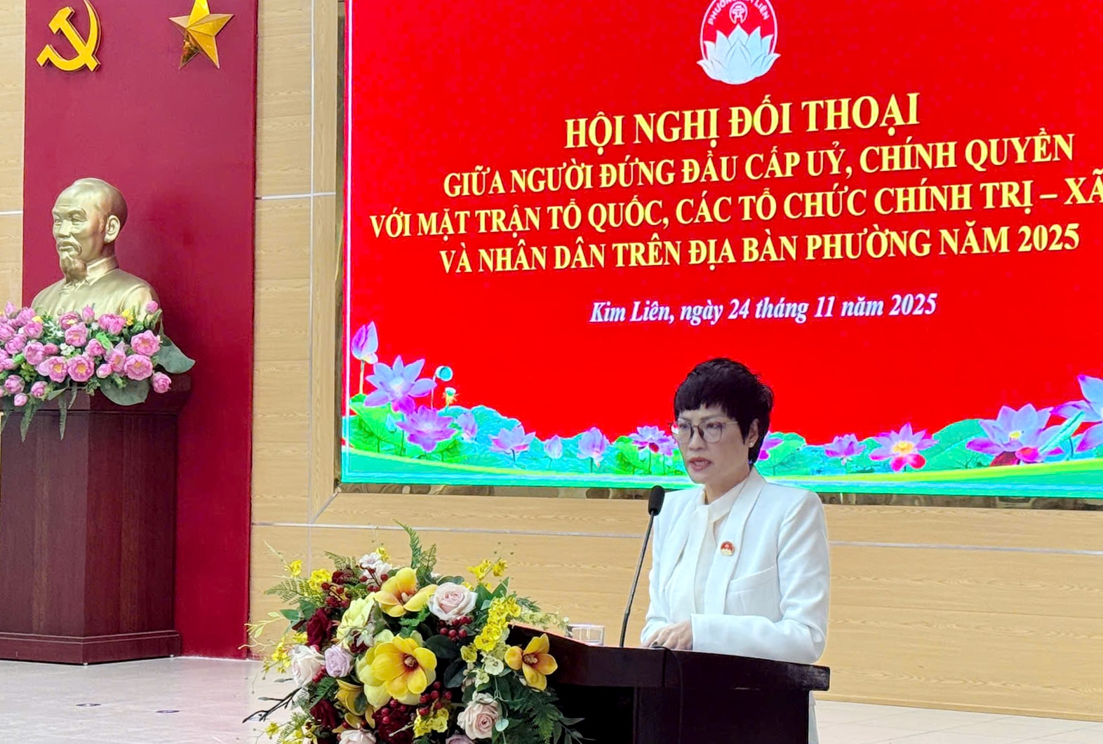 Phát biểu kết luận, Bí thư Đảng ủy, Chủ tịch HĐND phường Kim Liên Hoàng Thị Phương Ngọc khẳng định, những ý kiến tại hội nghị rất cụ thể, thiết thực và phản ánh đúng những vấn đề đang đặt ra trong đời sống dân sinh trên địa bàn. Đây là những ý kiến quý báu để Đảng ủy, chính quyền tiếp tục hoàn thiện phương thức lãnh đạo, nâng cao hiệu lực quản lý và phục vụ nhân dân ngày một tốt hơn.