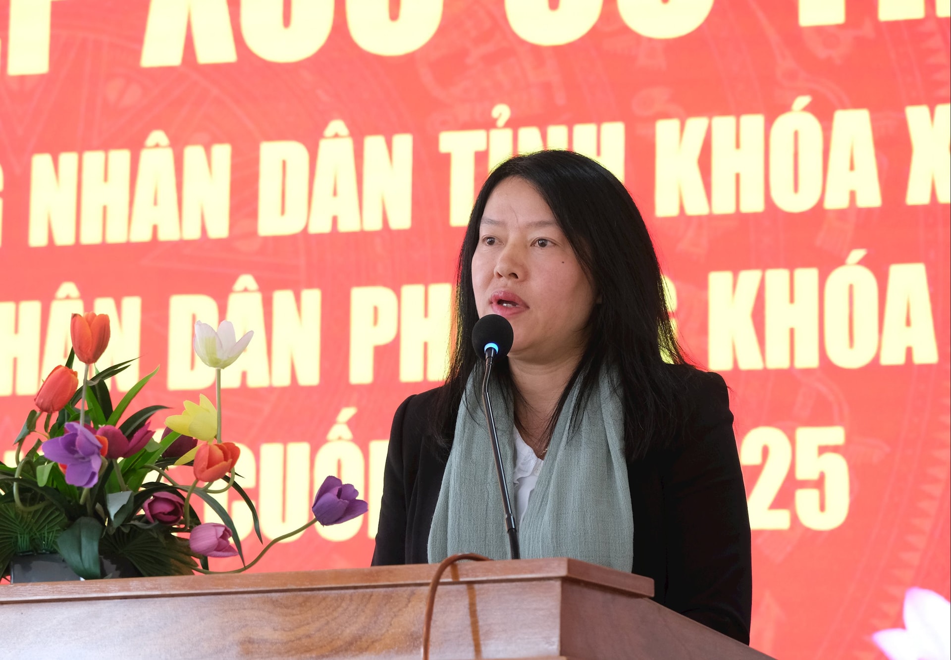 Bà Nguyễn Thị Phương Anh, đại diện tổ HĐND tỉnh, thông tin các nội dung của Kỳ họp thứ 5 (kỳ họp thường lệ cuối năm 2025) của HĐND tỉnh khóa X sắp tới