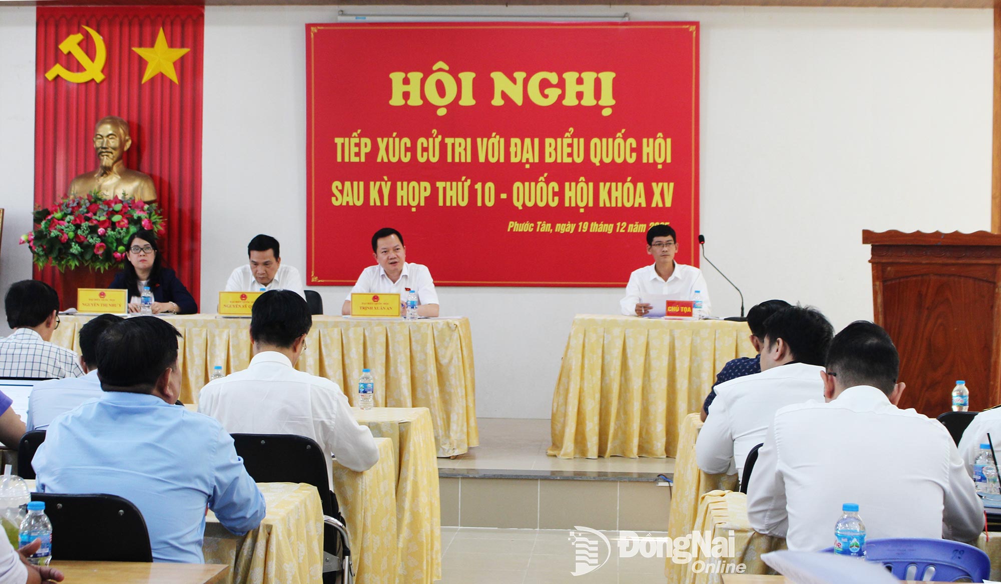 Tại buổi tiếp xúc, cử tri phường Phước Tân phản ánh nhiều vấn đề liên quan đến đời sống dân sinh và phát triển đô thị. Trong đó, cử tri kiến nghị việc cấp giấy chứng nhận quyền sử dụng đất đối với các hộ dân liên quan đến Dự án An Hưng Phát; đề nghị các cấp, ngành tiếp tục quan tâm thực hiện chính sách an sinh xã hội đối với người dân bị thu hồi đất phục vụ các dự án; tăng cường kết nối hạ tầng giao thông, bảo đảm trật tự, an toàn giao thông trên địa bàn.