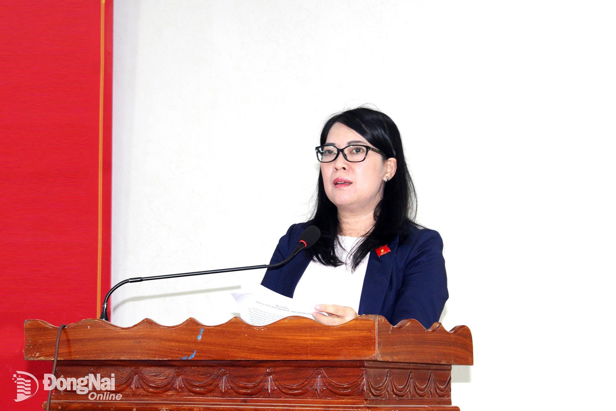 Đại biểu Quốc hội Nguyễn Thị Như Ý, Tỉnh ủy viên, Bí thư Đảng ủy, Chủ tịch HĐND phường Long Hưng thông tin đến cử tri kết quả Kỳ họp thứ 10, Quốc hội khóa XV. Ảnh: Hồ Thảo
