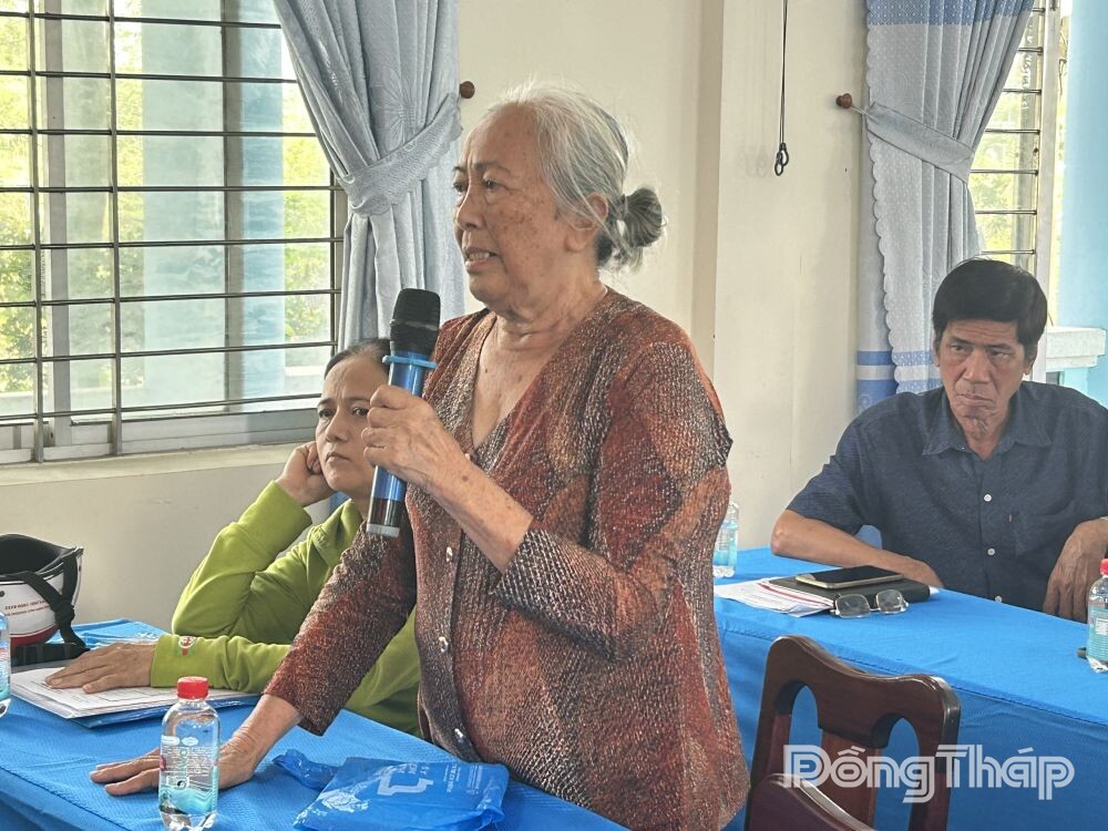 Cử tri phường Thới Sơn phát biểu ý kiến tại buổi tiếp xúc.