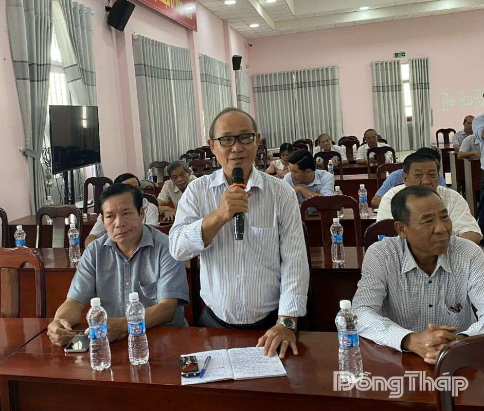 Cử tri xã Mỹ Đức Tây phát biểu ý kiến tại buổi tiếp xúc.