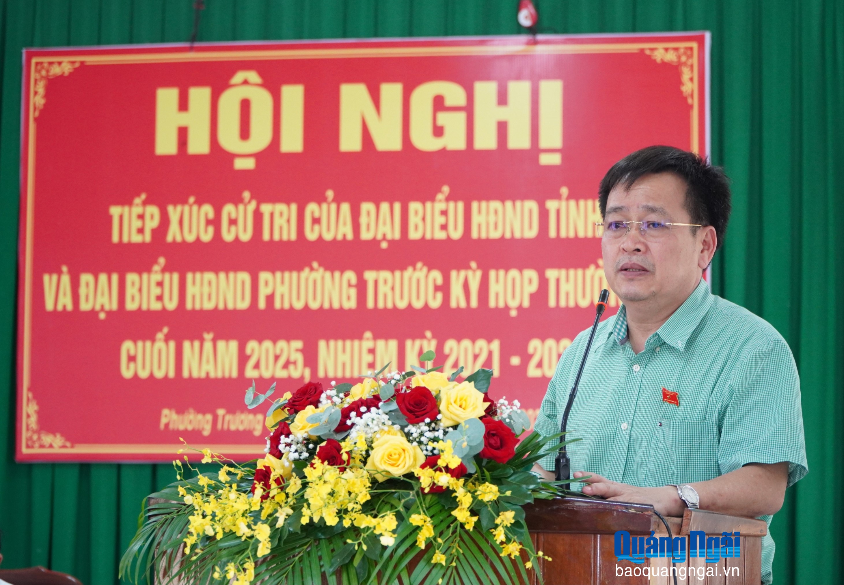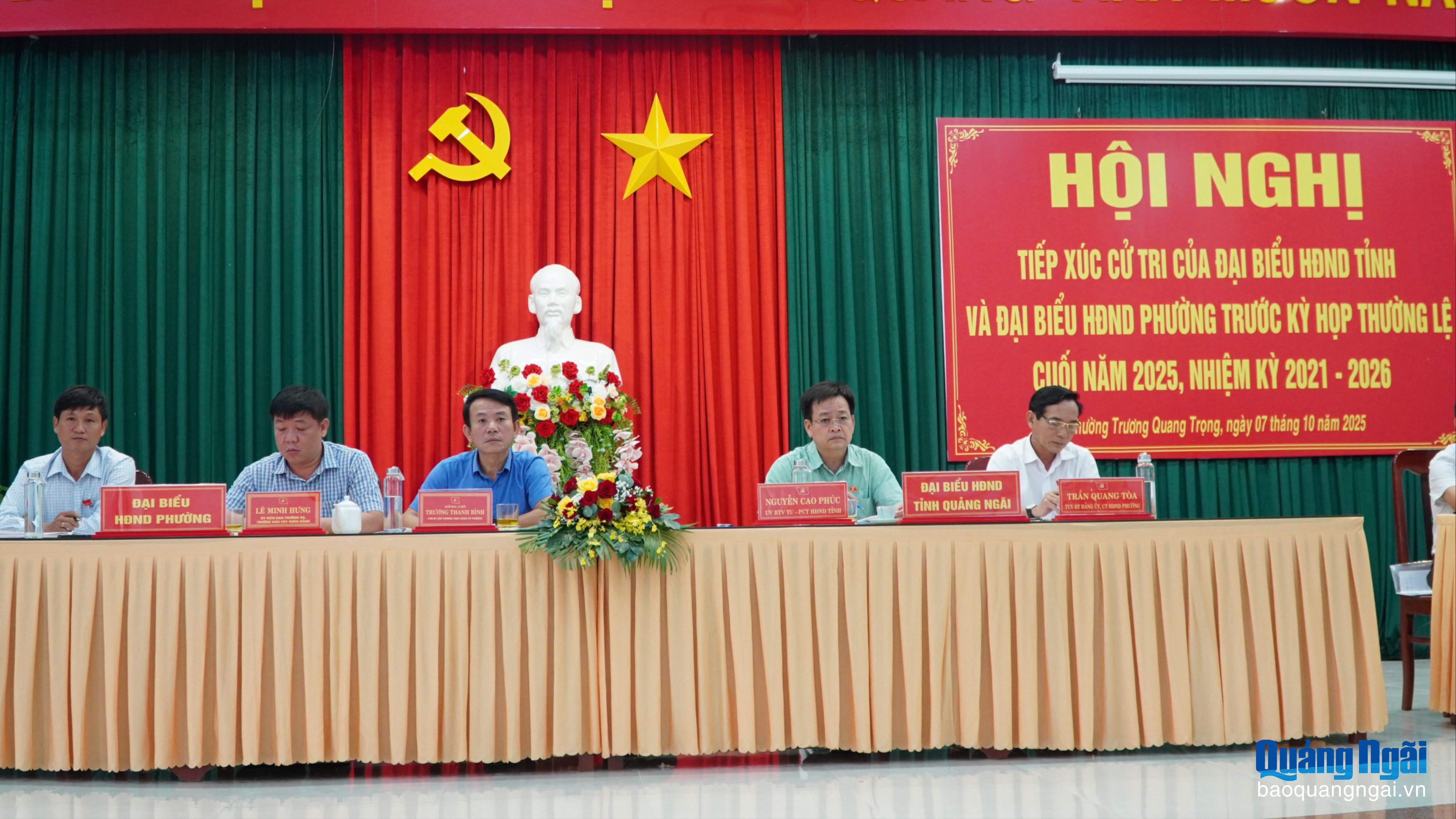Tại các buổi tiếp xúc cử tri, đại diện đại biểu HĐND tỉnh đã thông tin tình hình phát triển kinh tế, xã hội, quốc phòng, an ninh của tỉnh trong 9 tháng và phương hướng 3 tháng cuối năm 2025; đại biểu HĐND phường báo cáo kết quả hoạt động, kết quả giải quyết kiến nghị cử tri giữa năm, cùng dự kiến nội dung kỳ họp cuối năm 2025.