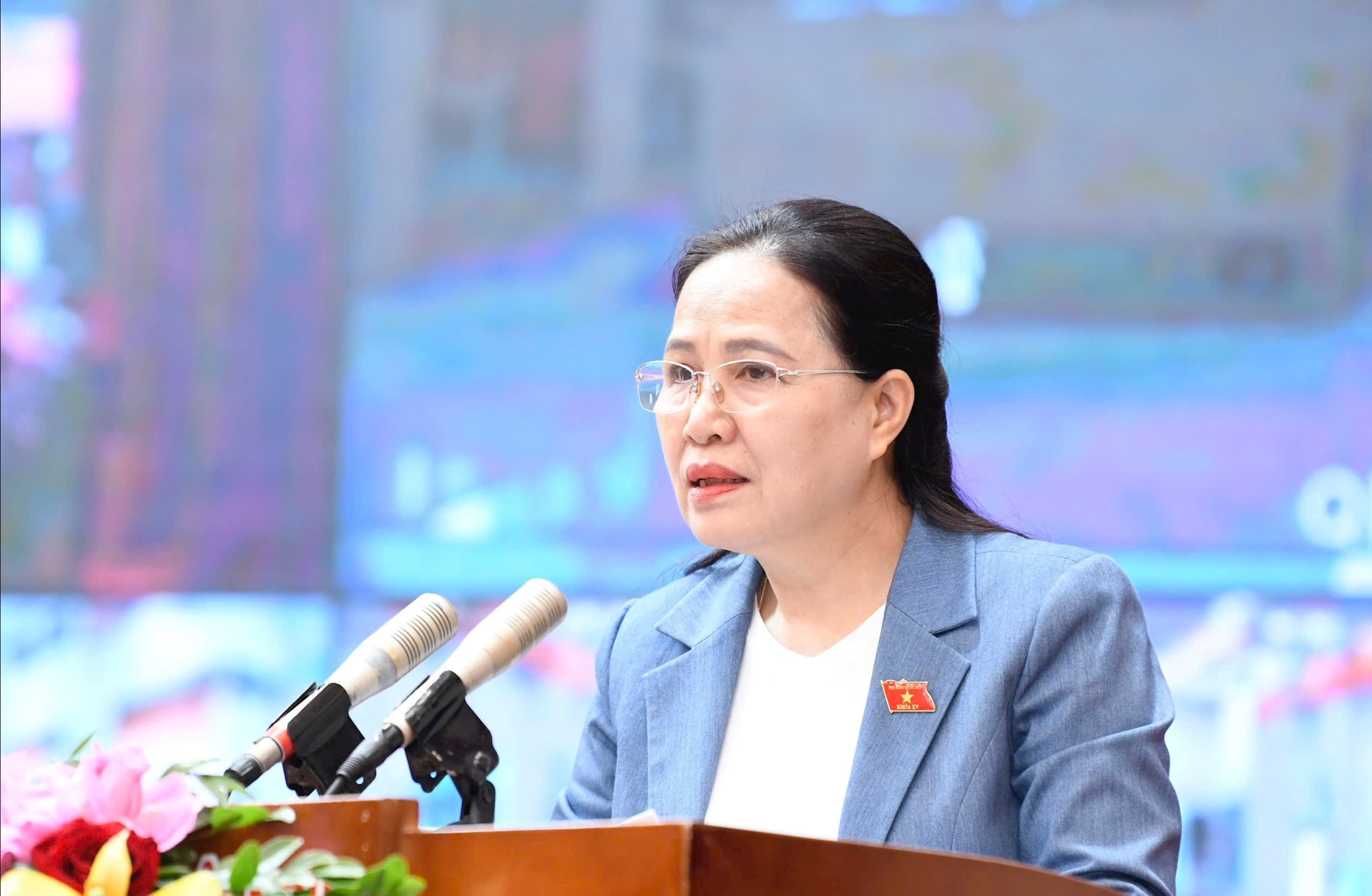 Phó Trưởng đoàn ĐBQH tỉnh Quảng Ninh Nguyễn Thị Thu Hà phát biểu tại hội nghị