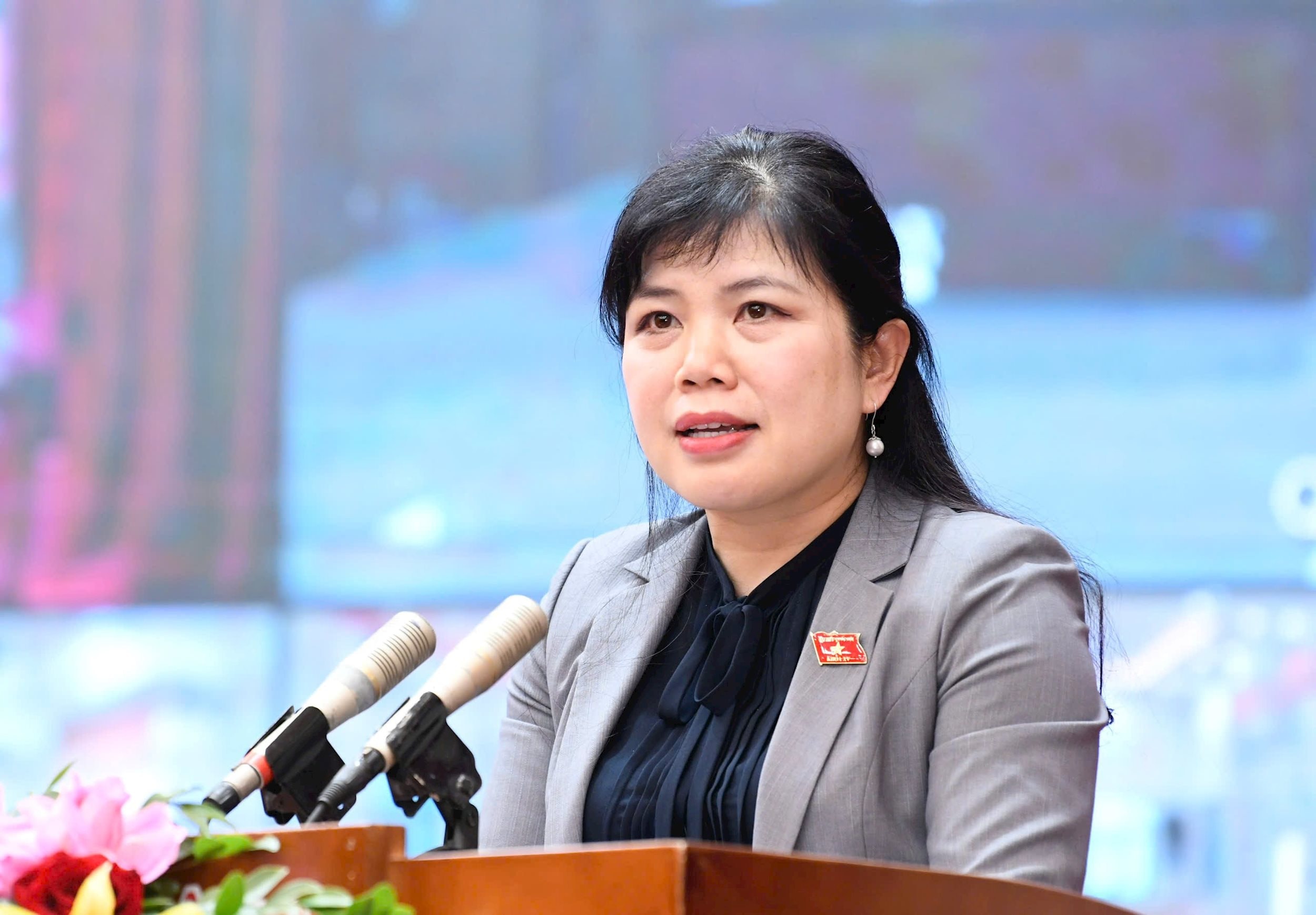 Phó Chủ nhiệm Ủy ban Văn hóa và Xã hội Đỗ Thị Lan, ĐBQH tỉnh Quảng Ninh phát biểu tại hội nghị