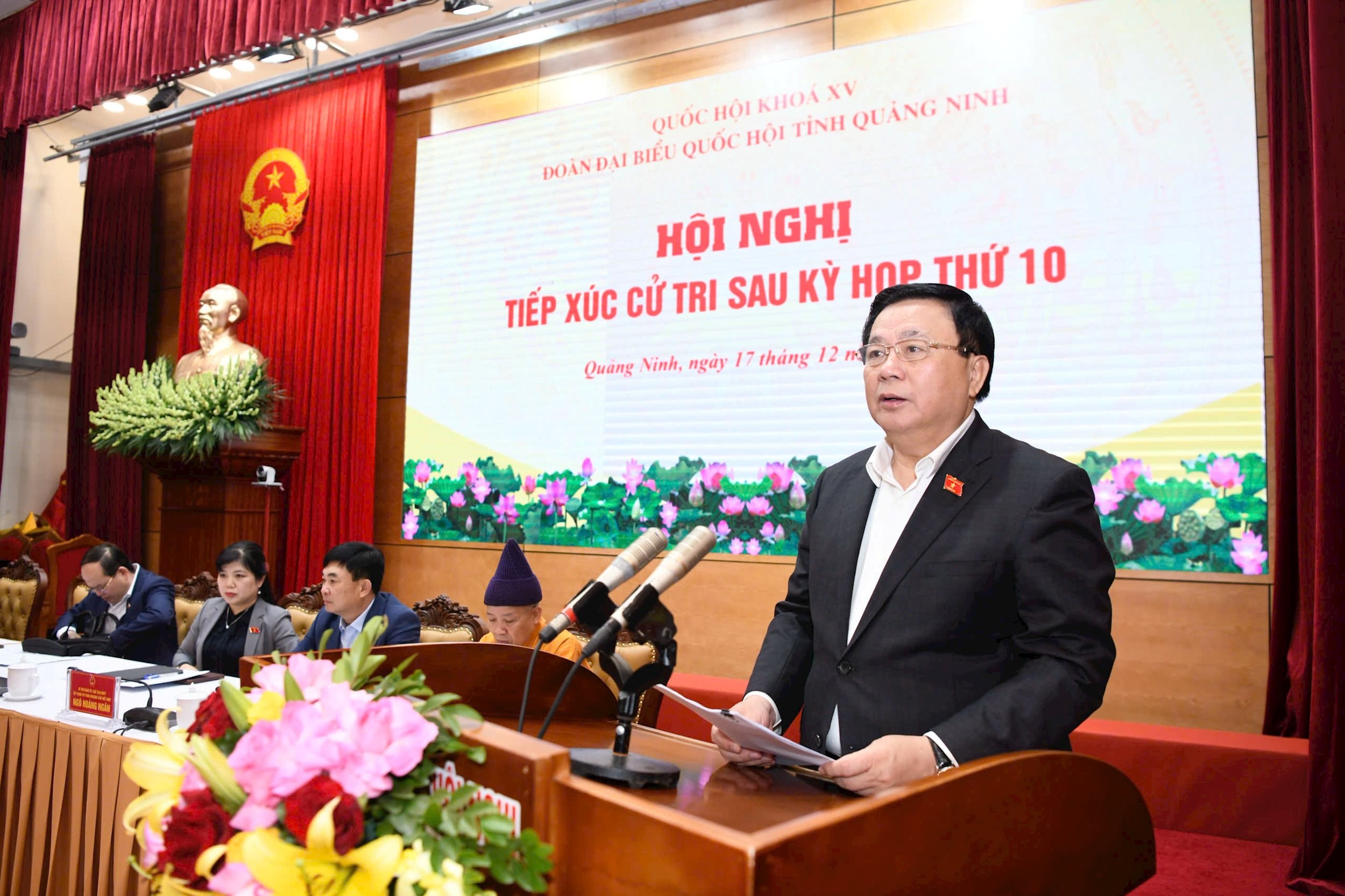 Cử tri các địa phương đánh giá cao chất lượng, khối lượng công việc đã hoàn thành của Quốc hội tại Kỳ họp thứ Mười và cả nhiệm kỳ Khóa XV nói chung, kết quả hoạt động của Đoàn ĐBQH tỉnh Quảng Ninh nói riêng; đồng thời, phản ánh nhiều ý kiến, kiến nghị tâm huyết từ thực tiễn.