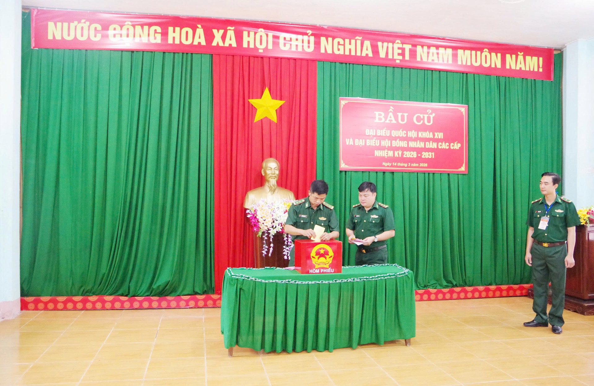 Ngay sau lễ khai mạc, các cử tri là cán bộ, chiến sĩ lực lượng vũ trang đang công tác tại các đơn vị biên phòng, quân đội đã tham gia bỏ phiếu bầu đại biểu Quốc hội khóa XVI và đại biểu HĐND các cấp tỉnh Lâm Đồng nhiệm kỳ 2026 - 2031, thể hiện quyền làm chủ và trách nhiệm đối với sự phát triển của địa phương, đất nước.