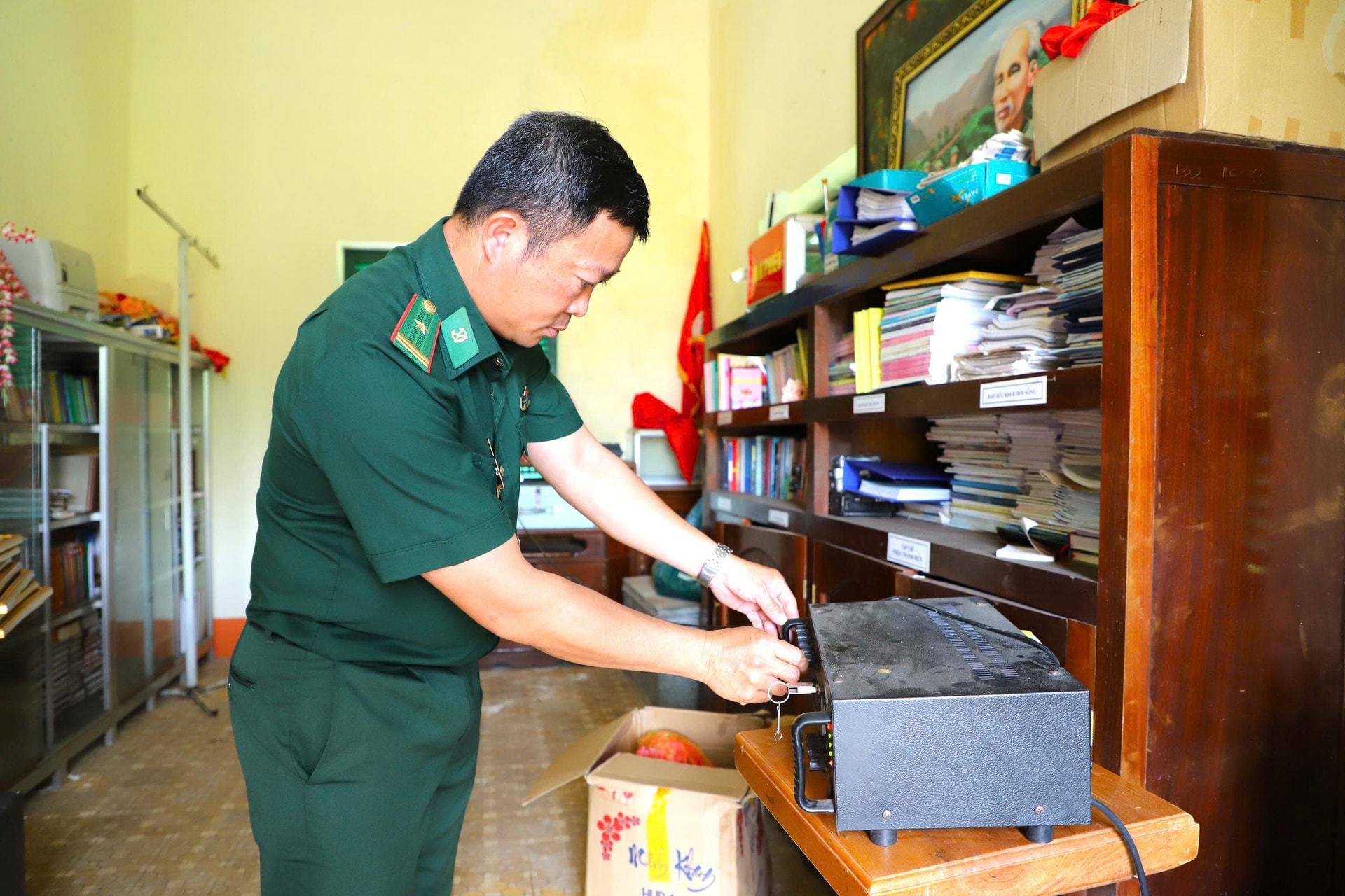 Chiến sĩ Đồn Biên phòng Đắk M'Bai bố trí hòm phiếu tại nơi quy định