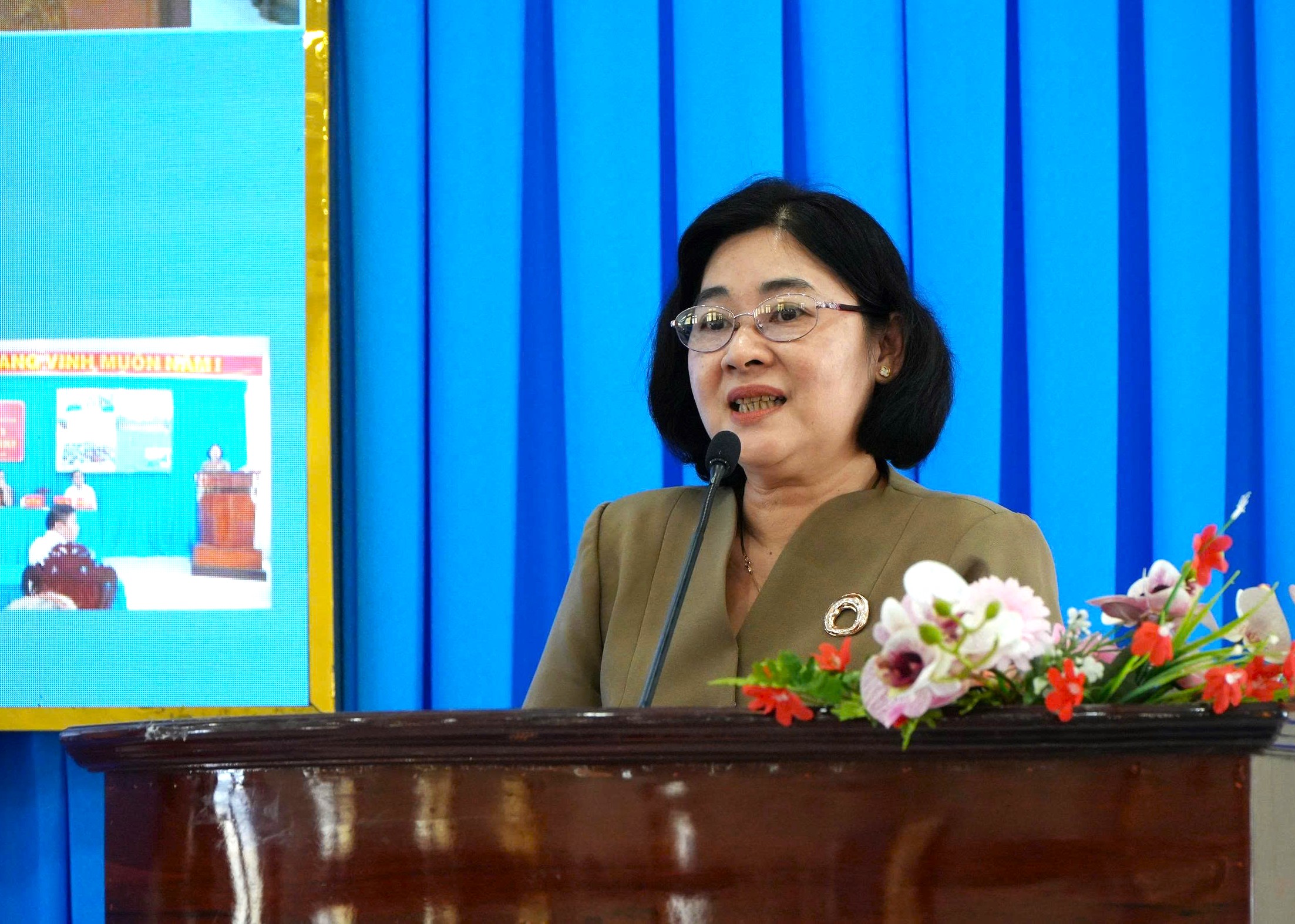 Ứng cử viên đại biểu Quốc hội Phan Thị Mỹ Linh trình bày chương trình hành động của bản thân. Ảnh: TRUNG HIẾU