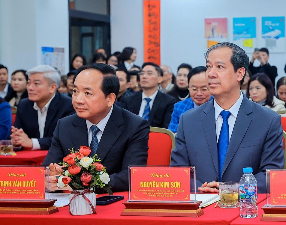 Trưởng Ban Tuyên giáo và Dân vận Trung ương Trịnh Văn Quyết và Bộ trưởng Giáo dục và Đào tạo Nguyễn Kim Sơn. Ảnh: MTTQ Việt Nam