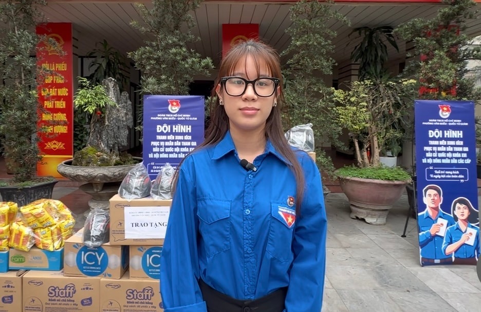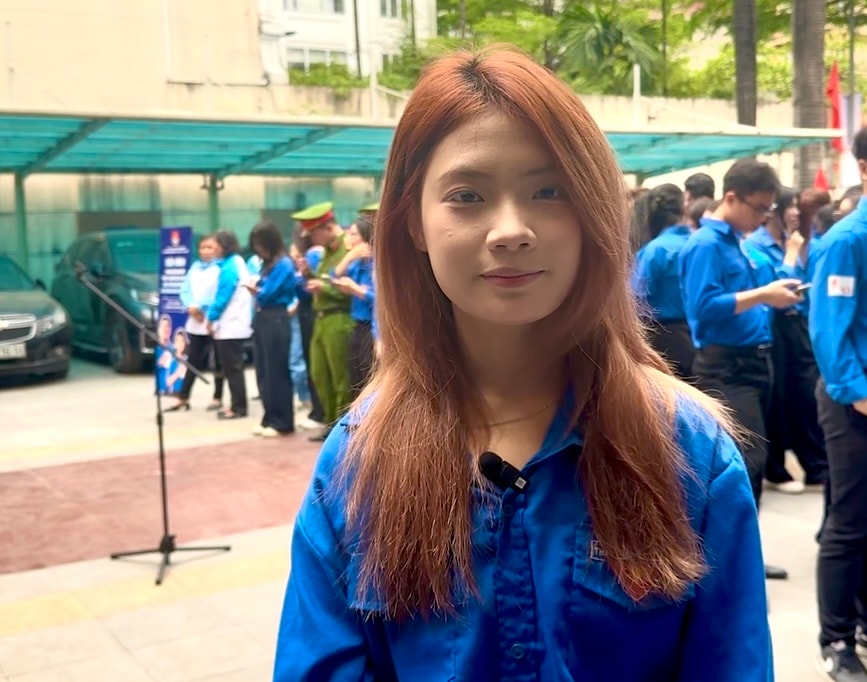 Lê Thị Thùy Linh, sinh viên Trường Đại học Khoa học Xã hội và Nhân văn đồng thời là Bí thư Chi đoàn khu dân cư số 14 phường Văn Miếu - Quốc Tử Giám chia sẻ trách nhiệm của thanh niên trước ngày hội lớn của đất nước. Ảnh: H.L
