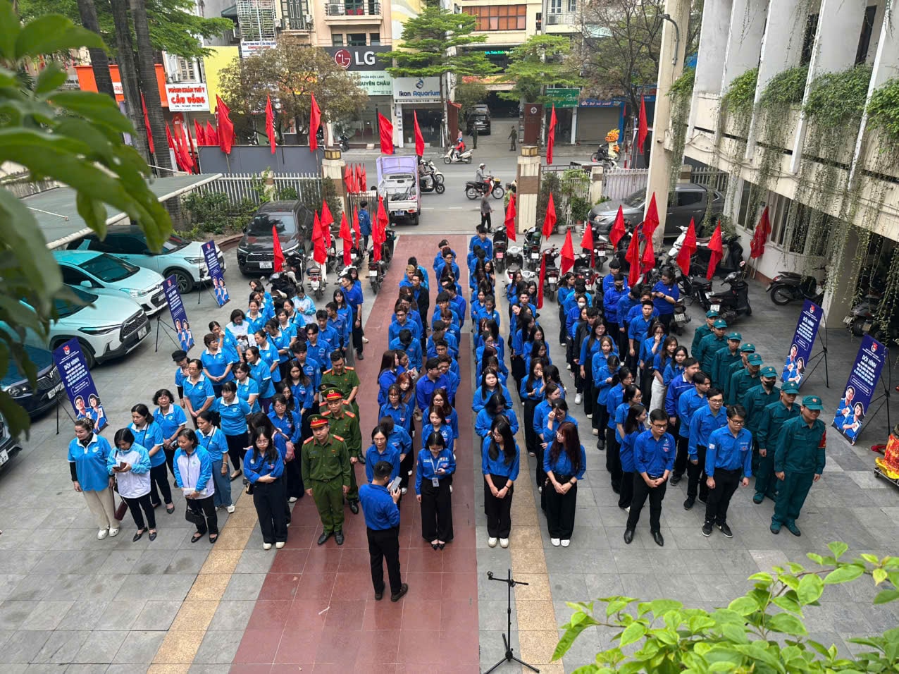 Sáng 14-3, Đoàn Thanh niên phường Văn Miếu - Quốc Tử Giám ra quân tuyên truyền công tác bầu cử. Ảnh: Hoàng Lân.