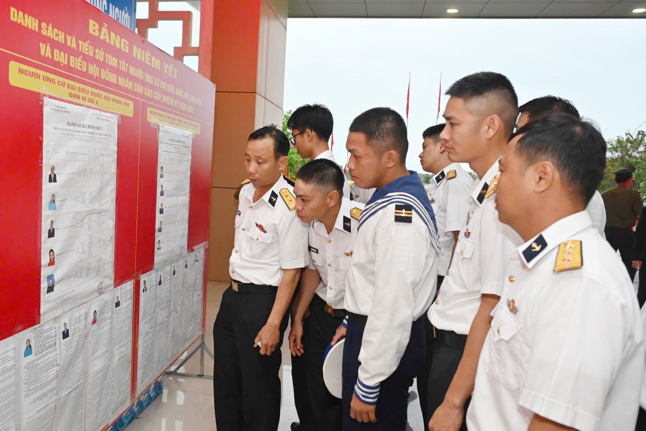 Cán bộ, chiến sĩ Bộ Tư lệnh Vùng 2 Hải quân xem thông tin các ứng cử viên ĐBQH Khóa XVI và đại biểu HĐND TP. Hồ Chí Minh Khóa XI, nhiệm kỳ 2026 – 2031