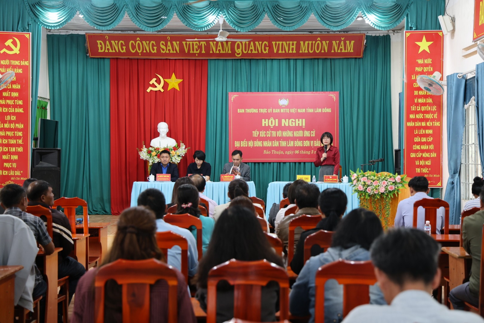 Tại hội nghị, đại diện Ban Thường trực Ủy ban MTTQ Việt Nam xã Bảo Thuận đã giới thiệu tiểu sử tóm tắt của các ứng cử viên đại biểu HĐND tỉnh.