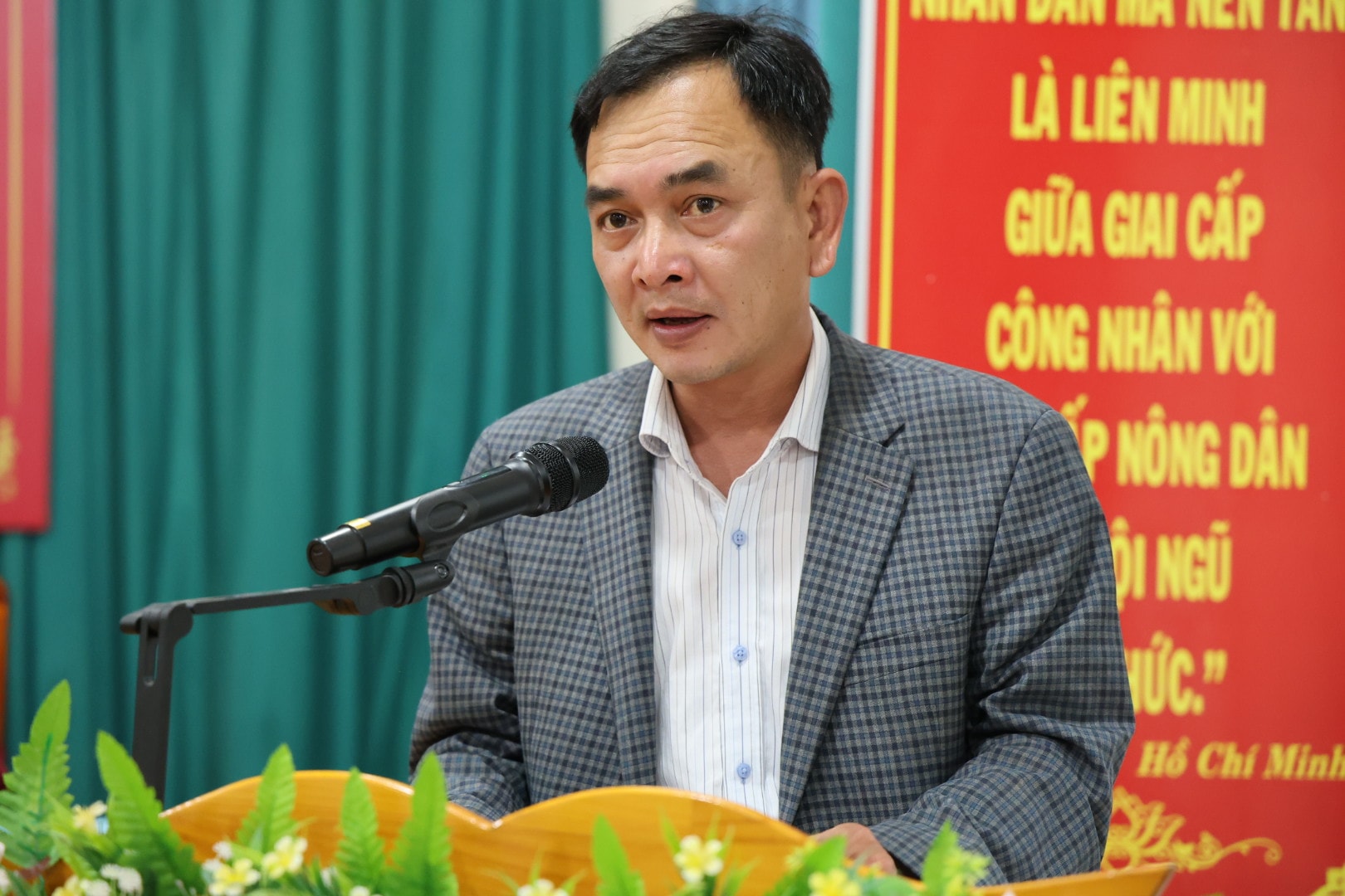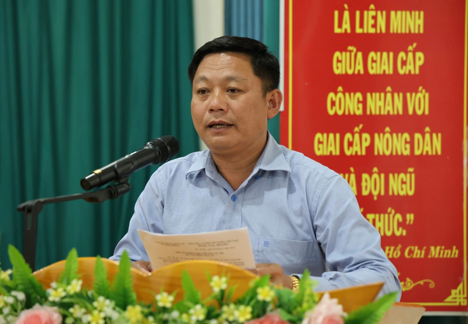 Ông Nguyễn Hạp, Trưởng Phòng Dân nguyện và Thông tin, Văn phòng Đoàn ĐBQH và HĐND tỉnh Lâm Đồng, trình bày chương trình hành động tại hội nghị