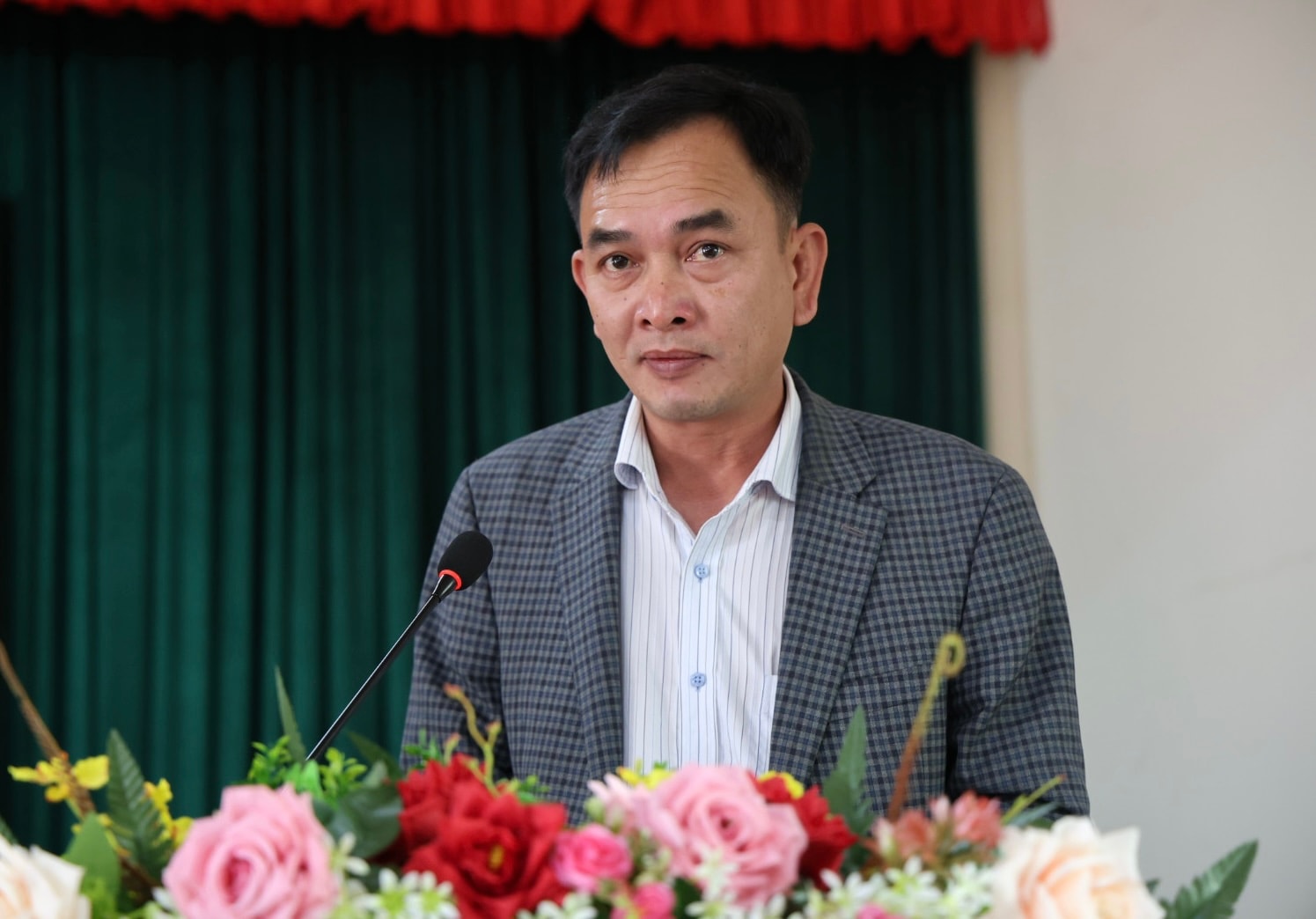 Đồng chí Nguyễn Cảnh Thìn, Chủ tịch UBND xã Bảo Thuận, phát biểu tại hội nghị
